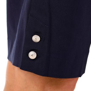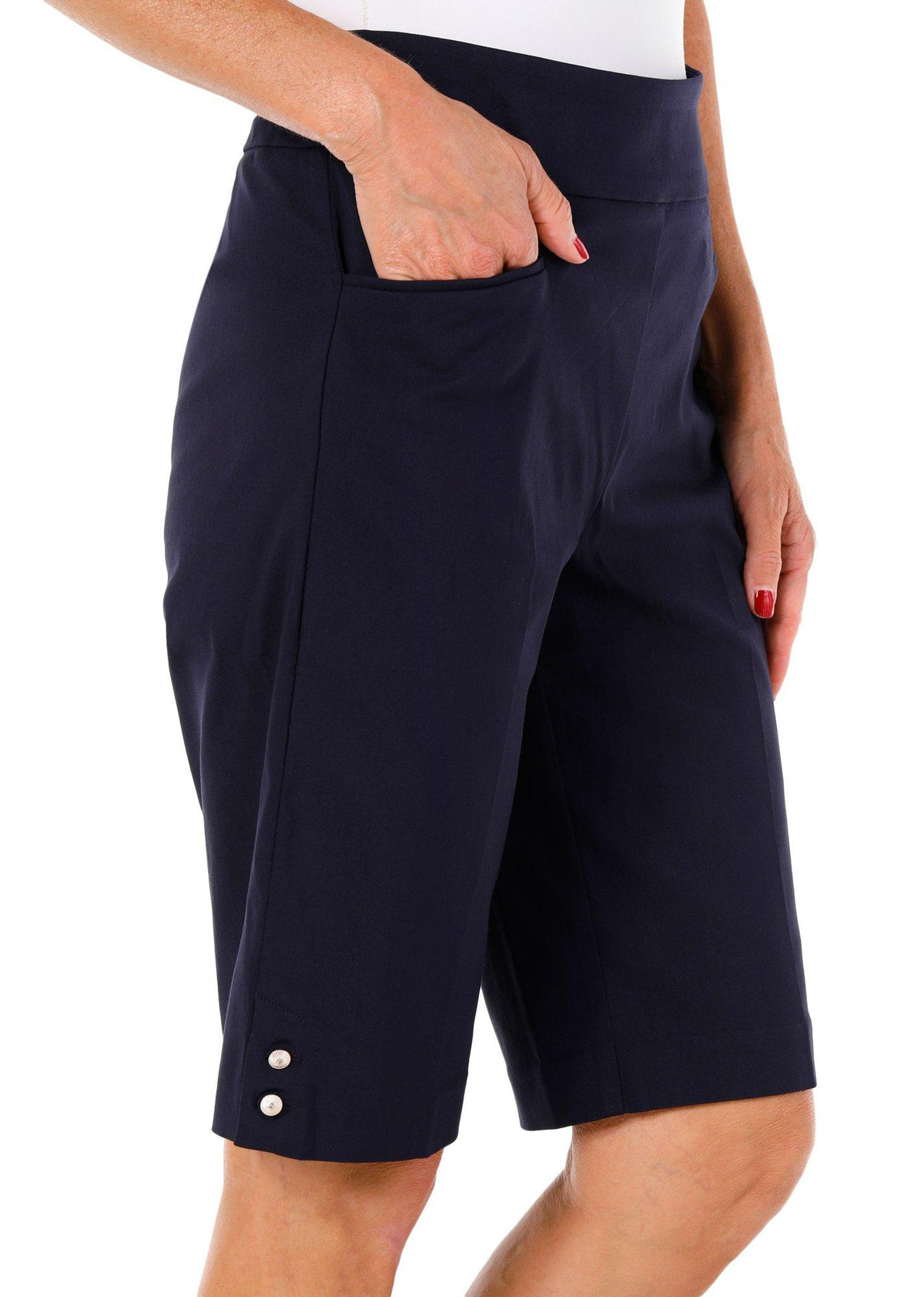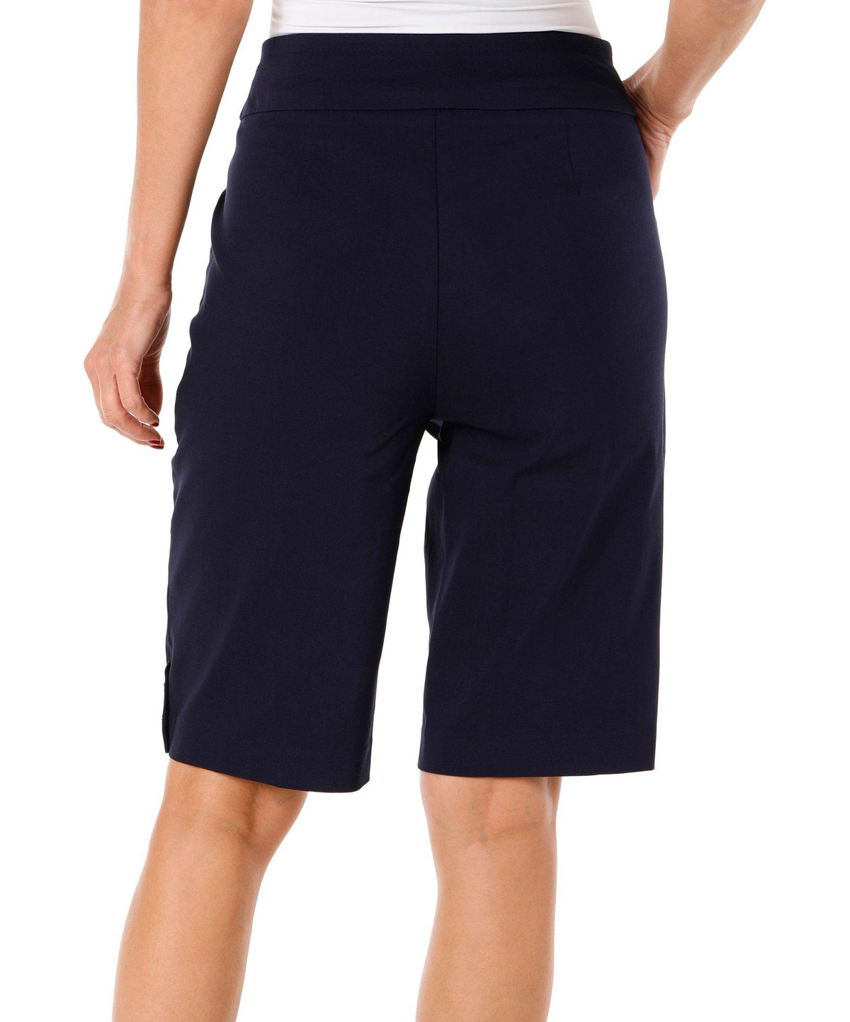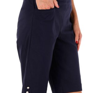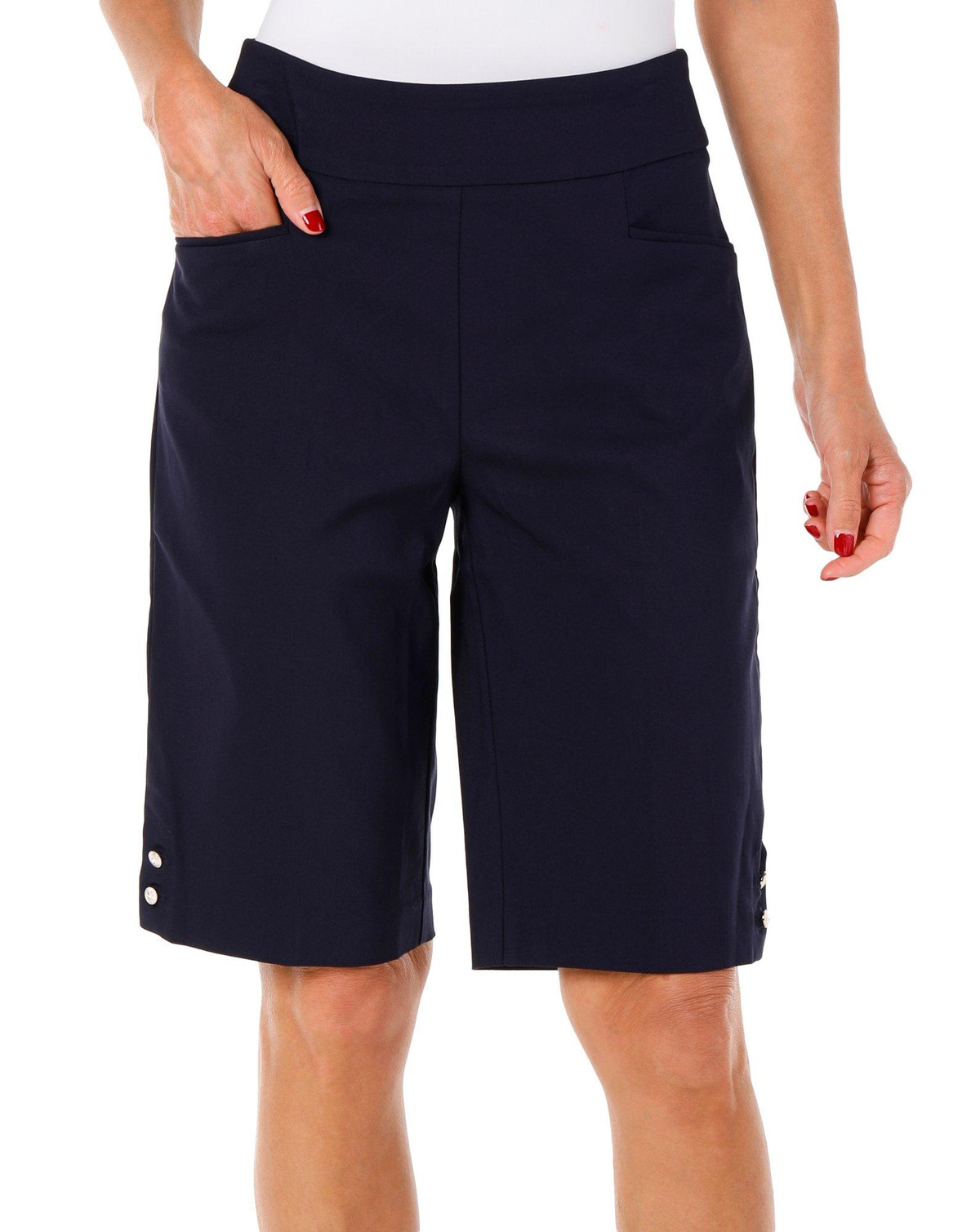 Add a touch of elegance to your summer wardrobe with these Women’s Gold Bead Bermuda Shorts. Made from a soft, stretchy blend of nylon, rayon, and spandex, they feature a sleek solid color, gold bead accents at the hem, a comfortable pull-on waistband, and handy front pockets.