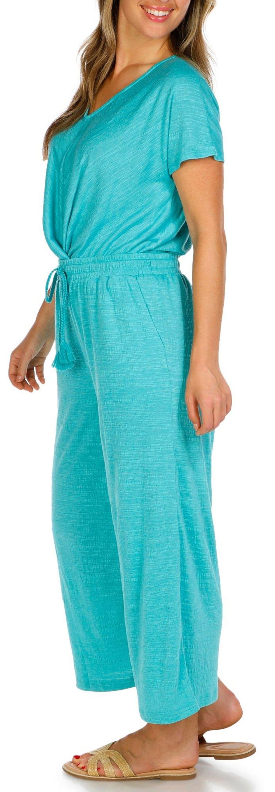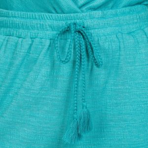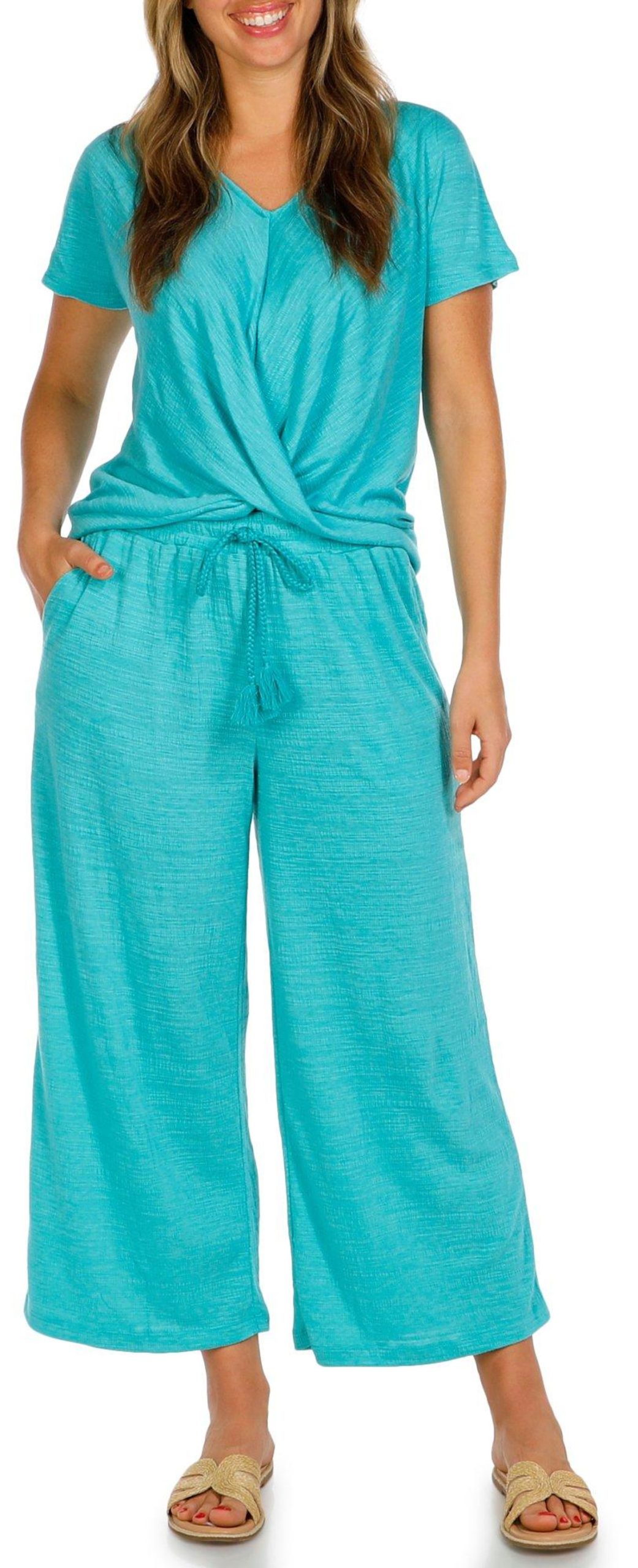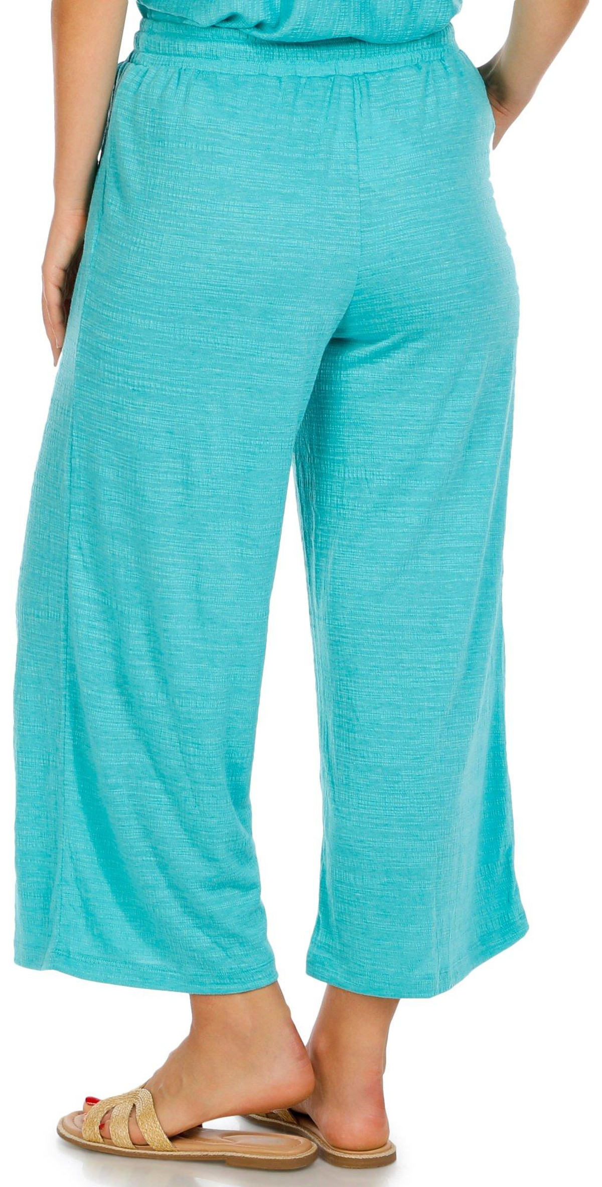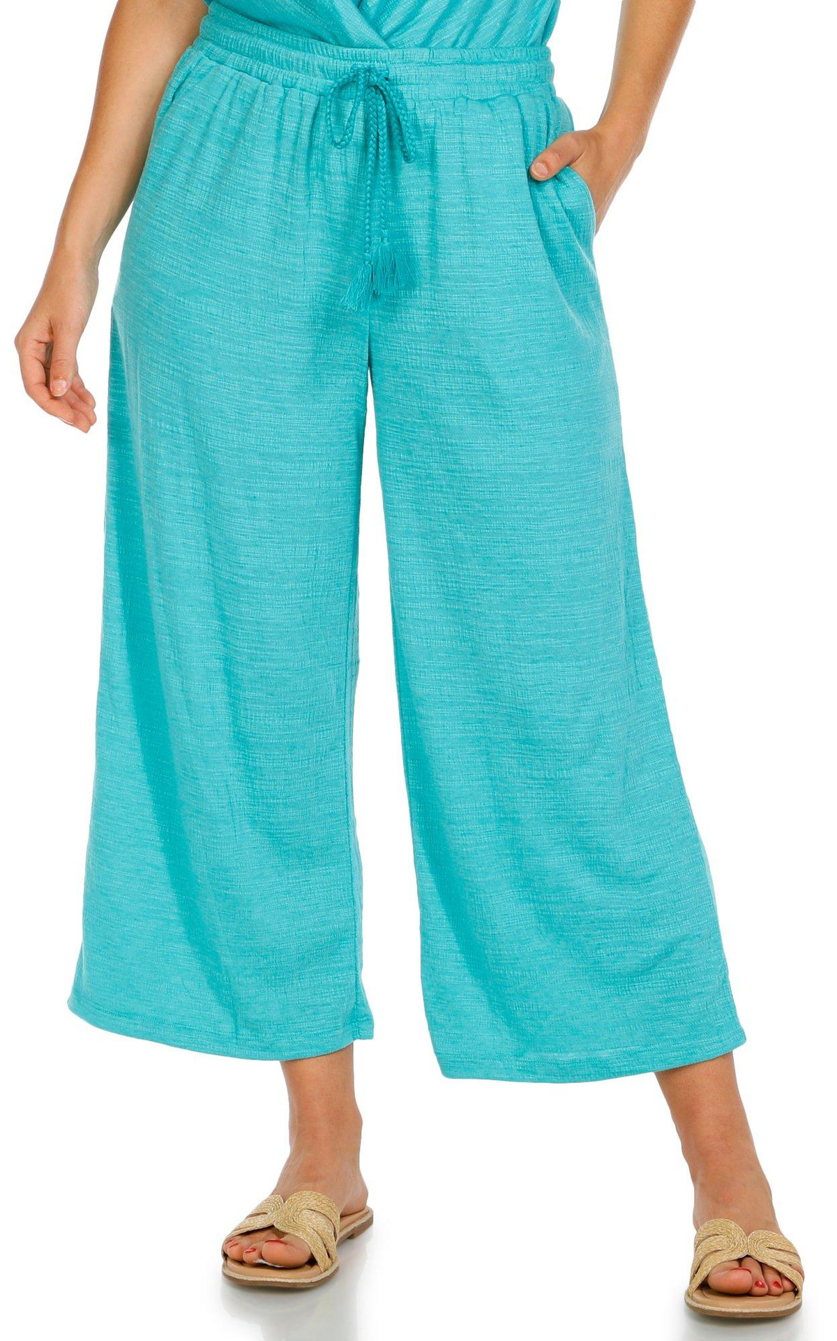 These Cropped Wide Leg Pants are a stylish and comfortable addition to any wardrobe. Featuring double side seam pockets, these pants offer practicality and convenience. The drawstring waistband ensures a perfect fit and adds a touch of casual elegance. Ideal for warm weather or relaxed outings, elevate your look with this versatile piece that effortlessly combines comfort and fashion. Fabrication is 70% polyester, 29% viscose, 1% spandex.
