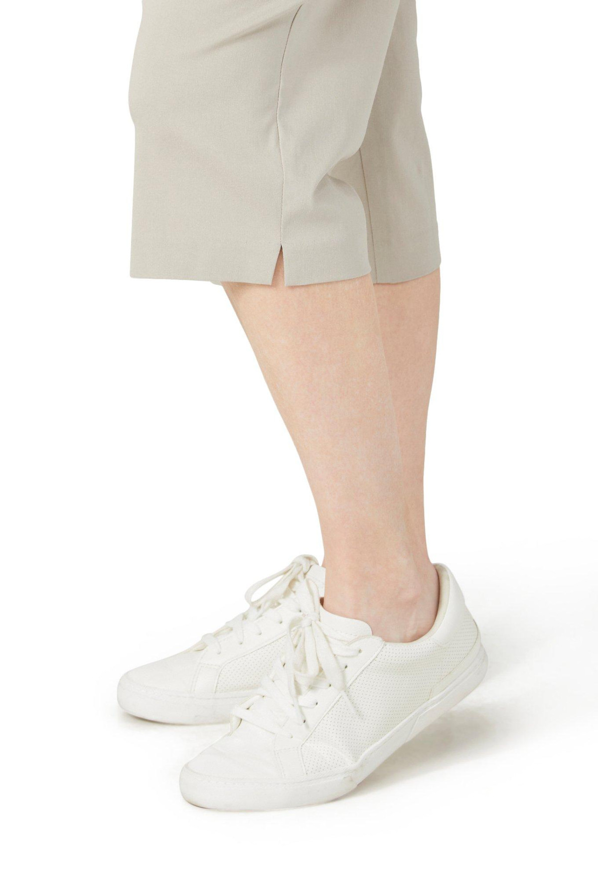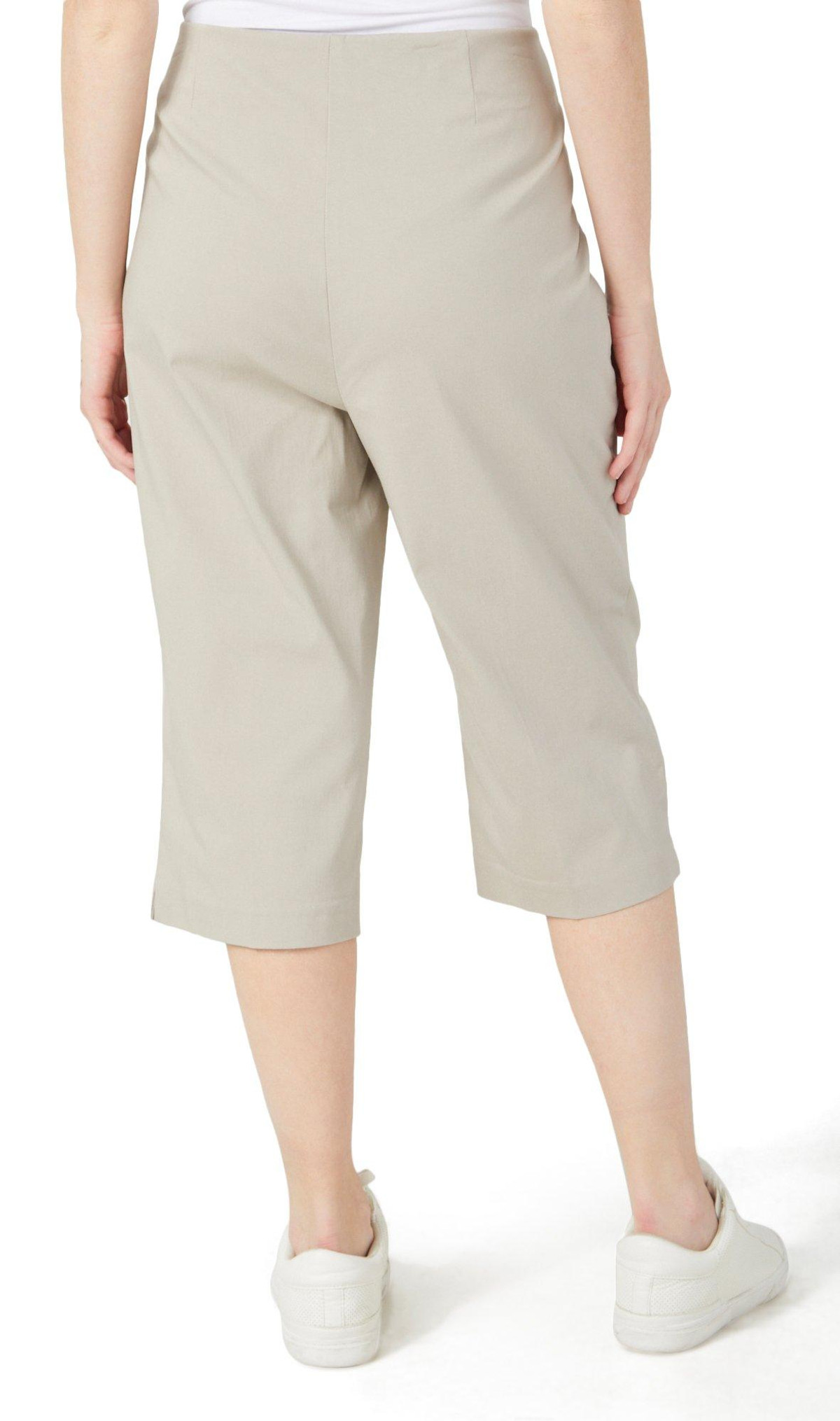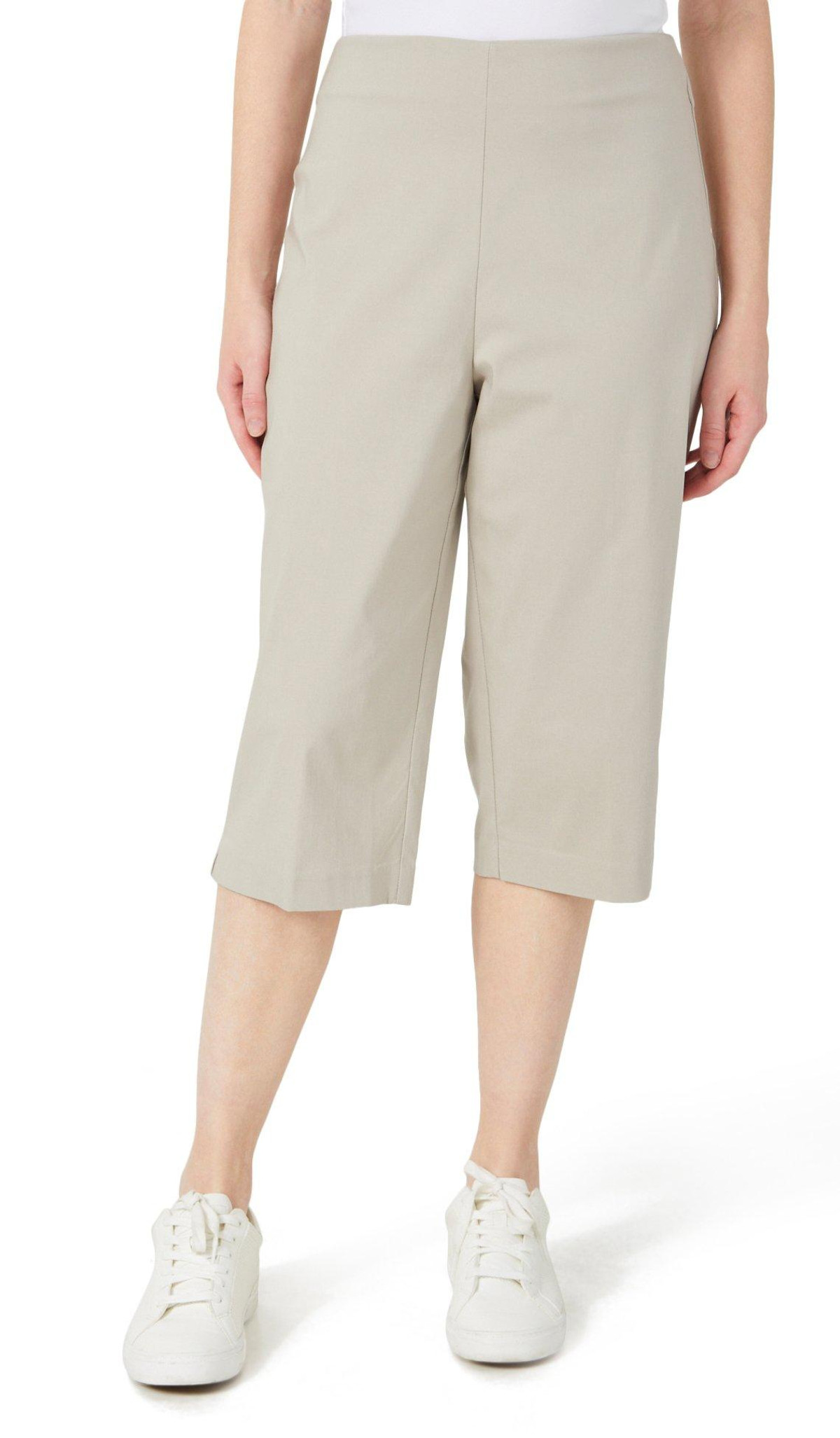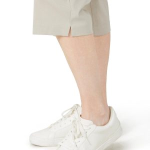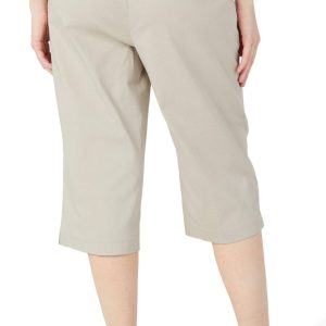 These womens capris feature a solid color with a 17 inch inseam and a sleek slim fit. Made of nylon, rayon, and spandex they offer super stretch tech and an elastic pull on waistband for all day comfort and easy movement.