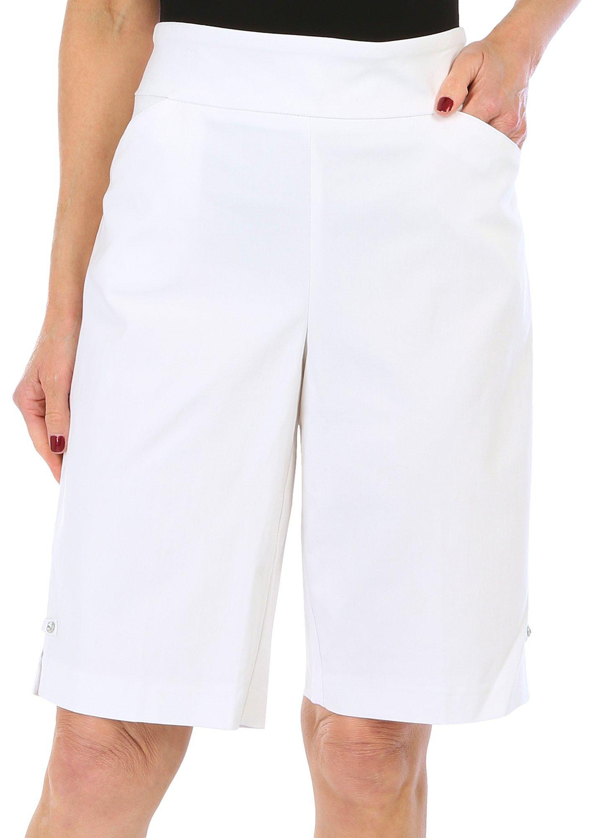 Counterparts styles complete your look with a stylish, comfortable finish. This pair of pull on shorts features an elastic waistband to provide you with all-day comfort, enhanced stretch for a relaxing fit, embellished hemline detail, and a solid color design that allows for effortless matching. Inseam is approximately 12 inches.