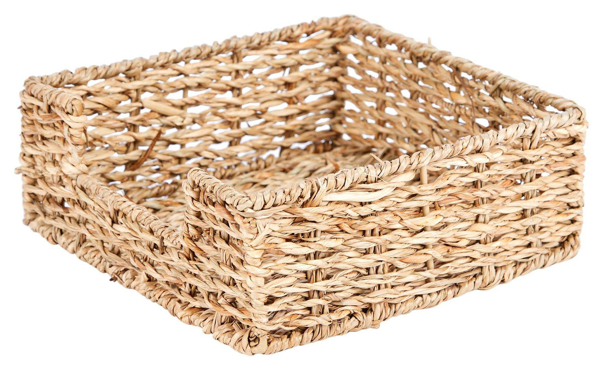 Enhance your table setting with the Hand Woven Seagrass Napkin Holder, measuring 7 inches by 7 inches by 3 inches. This elegant and functional piece is crafted from natural seagrass, offering a rustic charm to your dining decor. Its sturdy construction ensures durability, while the spacious design accommodates a variety of napkin sizes. Perfect for both everyday use and special occasions, this napkin holder adds a touch of sophistication to any table.