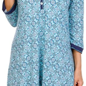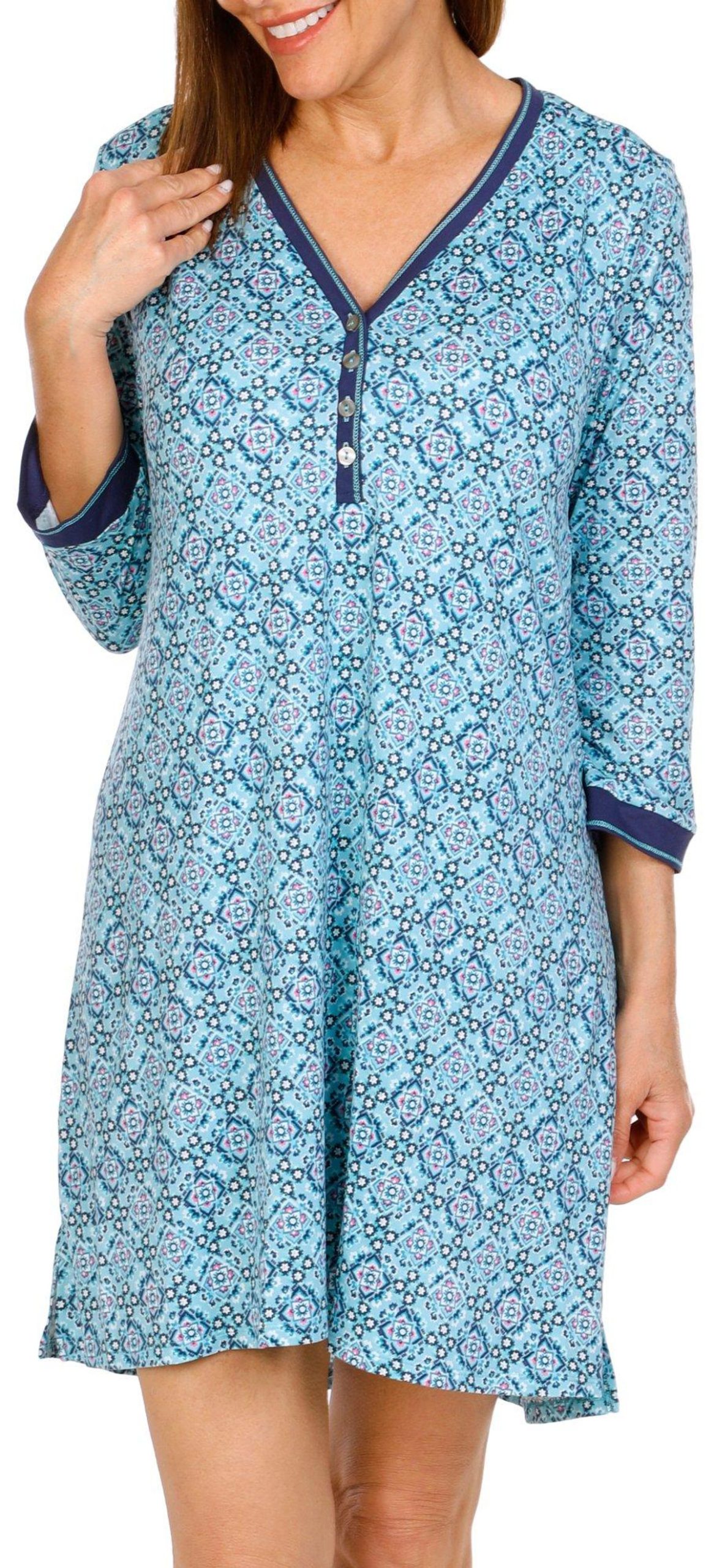 Relax in comfort with this Long Sleeve Sleep Shirt. Featuring a charming print pattern, this sleep shirt adds a touch of style to your nighttime routine. The 4-button Henley-style neckline offers a classic and cozy look, perfect for unwinding after a long day. Made from soft, breathable fabric, this sleep shirt ensures a restful night’s sleep. Top length measures approximately 33 in. Fabrication is 93% polyester, 3% spandex.