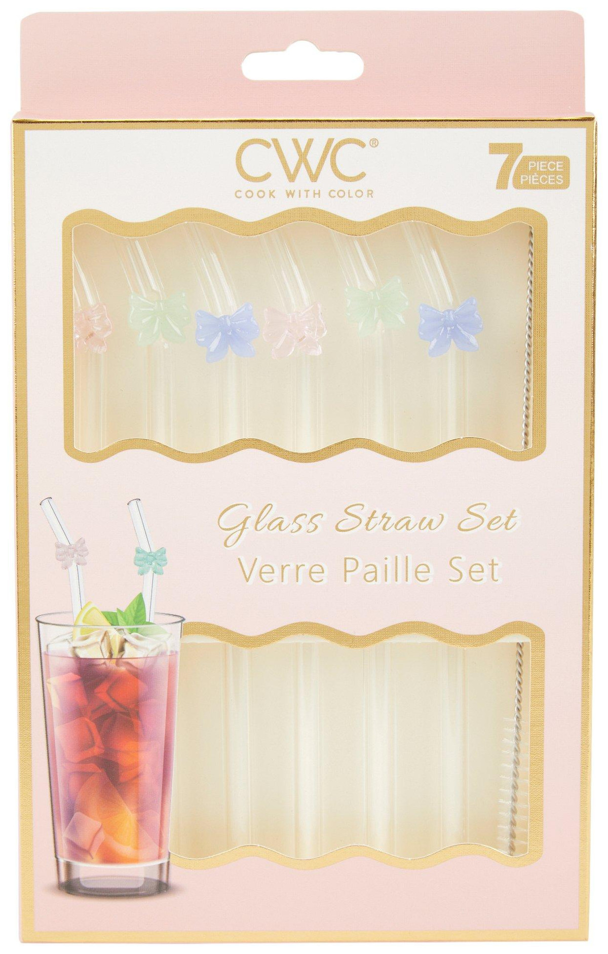 Sip sustainably with this 7-piece Glass Straw Set with Bow accents! Includes six reusable glass straws, each adorned with a cute accent, plus a cleaning brush for easy care.