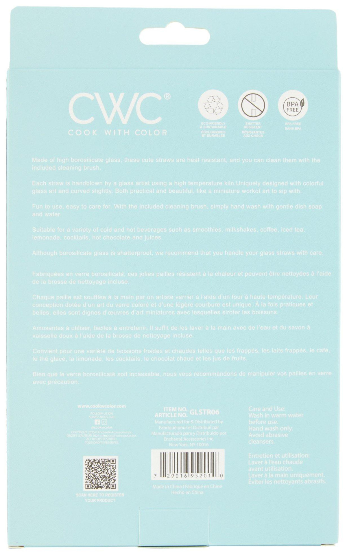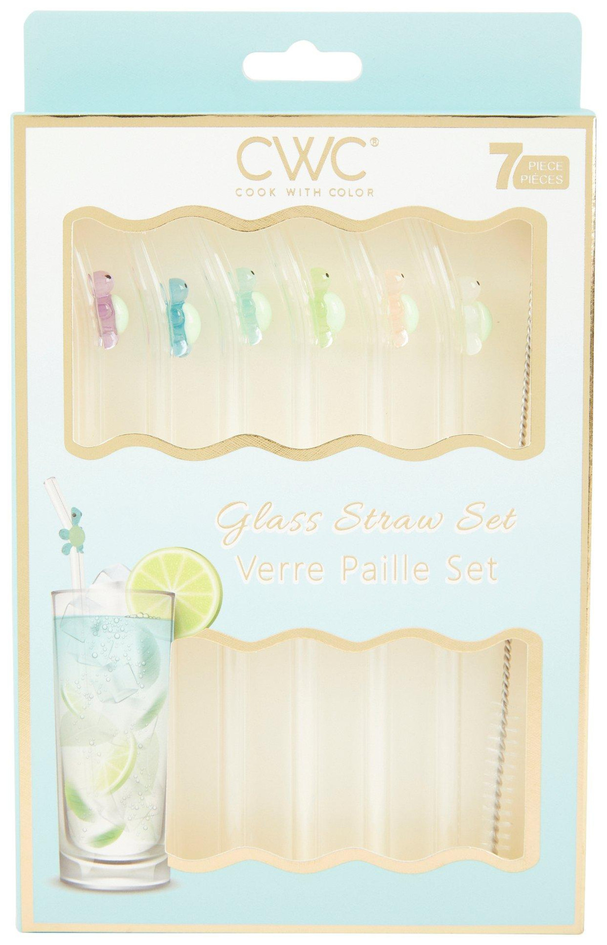 CWC 7 Pc Glass Straw Set Turtles