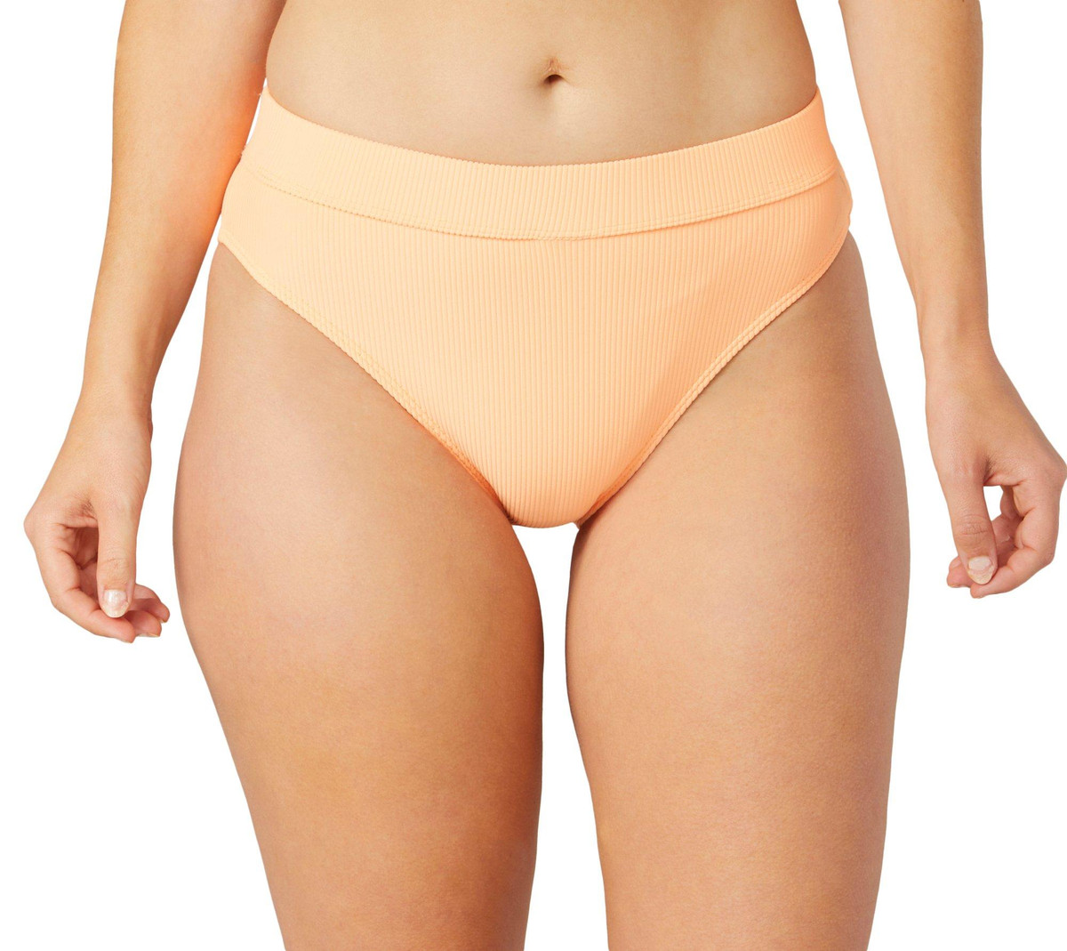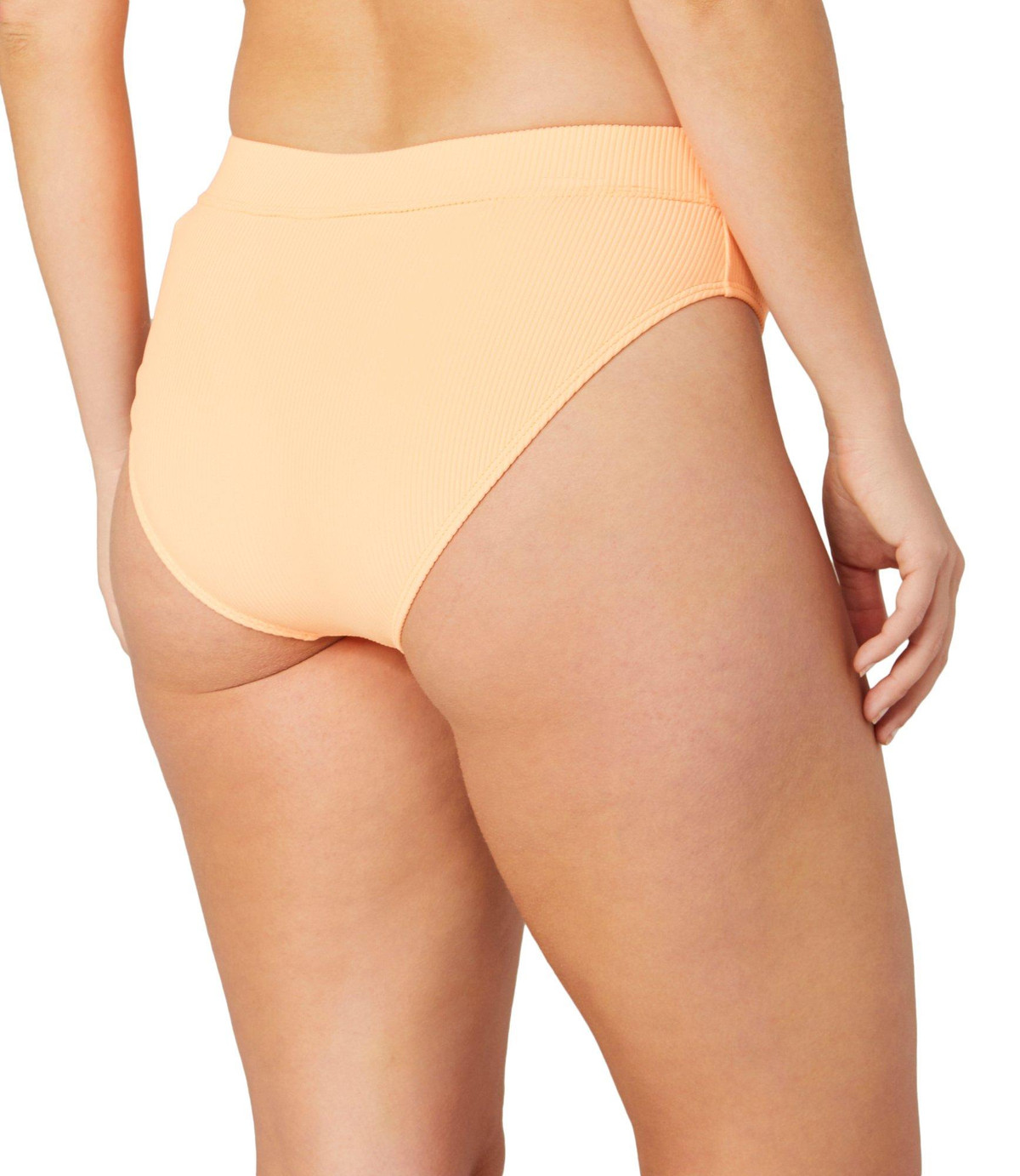 This lined swim bottom features a solid color design on ribbed fabric, a high waistband, and medium coverage. Fabrication 85% nylon, 15% spandex.