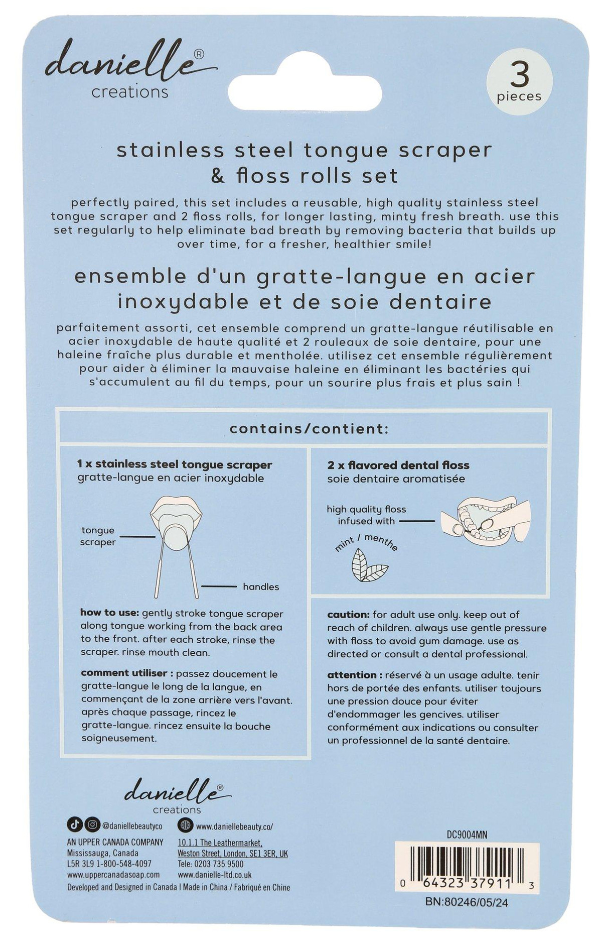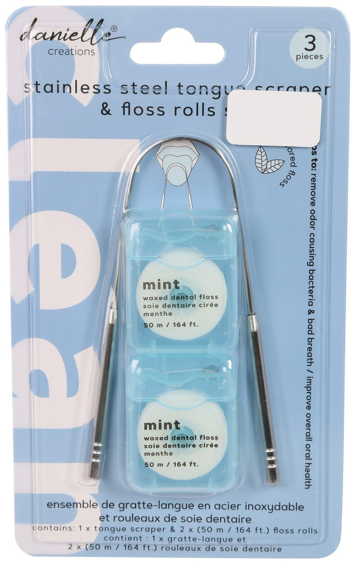 Maintain optimal oral hygiene with our 3 Pc Tongue Scraper Set. This comprehensive set includes a high-quality stainless steel tongue scraper and two rolls of dental floss, ensuring a complete clean for your mouth. The tongue scraper effectively removes bacteria and debris, promoting fresher breath and a healthier mouth, while the dental floss helps keep your teeth and gums clean.