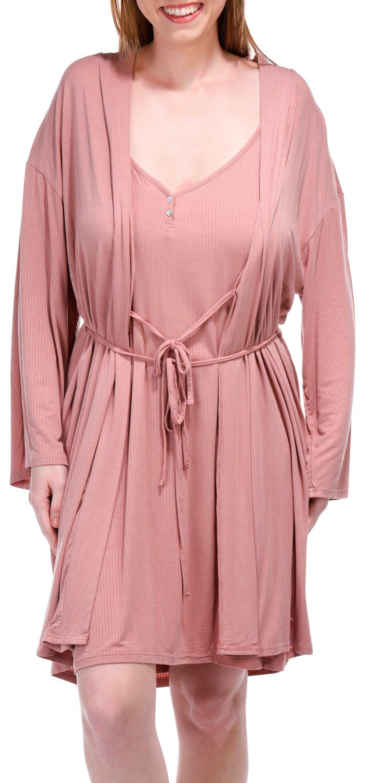 Introducing this luxurious 2-piece sleepwear set, perfect for ultimate comfort and style. This set includes a long sleeve robe and a sleeveless chemise, both crafted from soft, breathable fabric that feels gentle against your skin. The robe provides an extra layer of warmth and elegance, while the chemise ensures a comfortable fit for a restful night’s sleep. Fabrication is 95% rayon, 5% spandex.