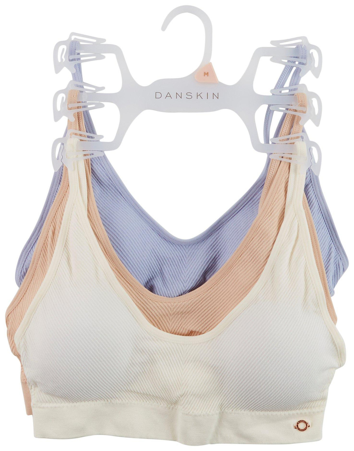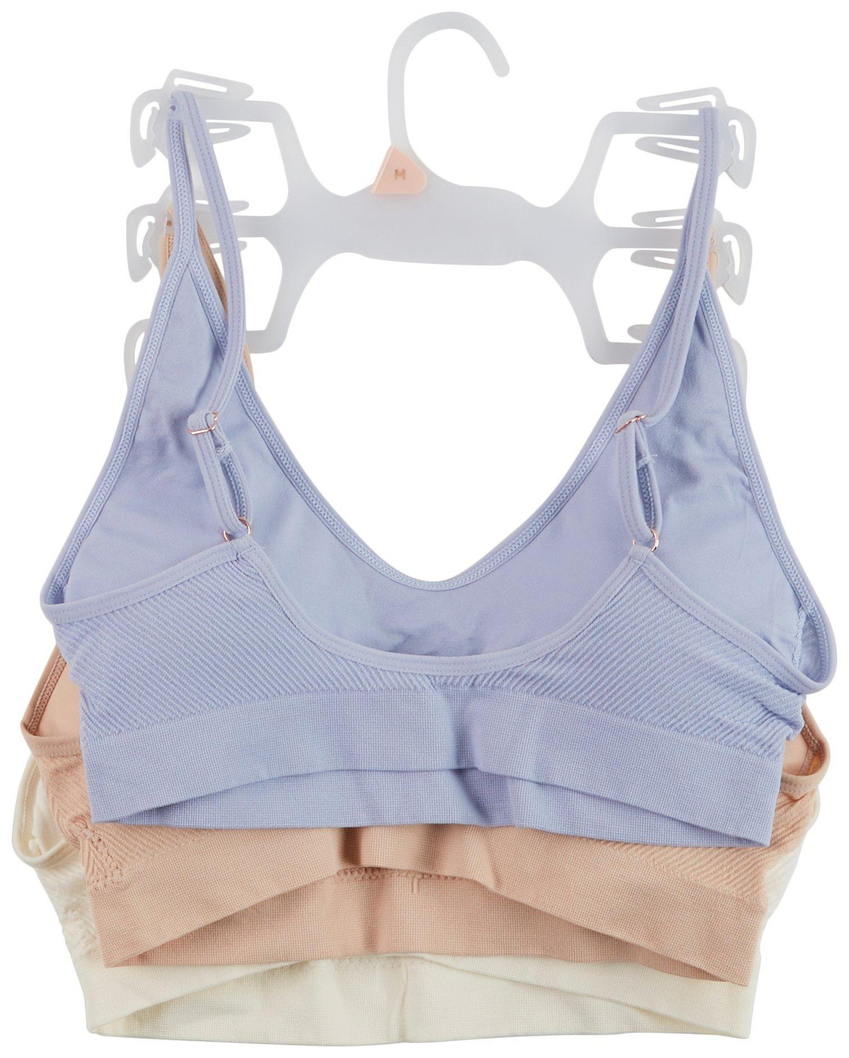 Enjoy all-day comfort with this Womens 3-Pack Seamless Ribbed Bralettes. Featuring three assorted colors, a ribbed seamless design, adjustable straps, and removable cups, these bralettes offer the perfect blend of support and versatility for everyday wear. Fabrication 92% nylon, 8% spandex.