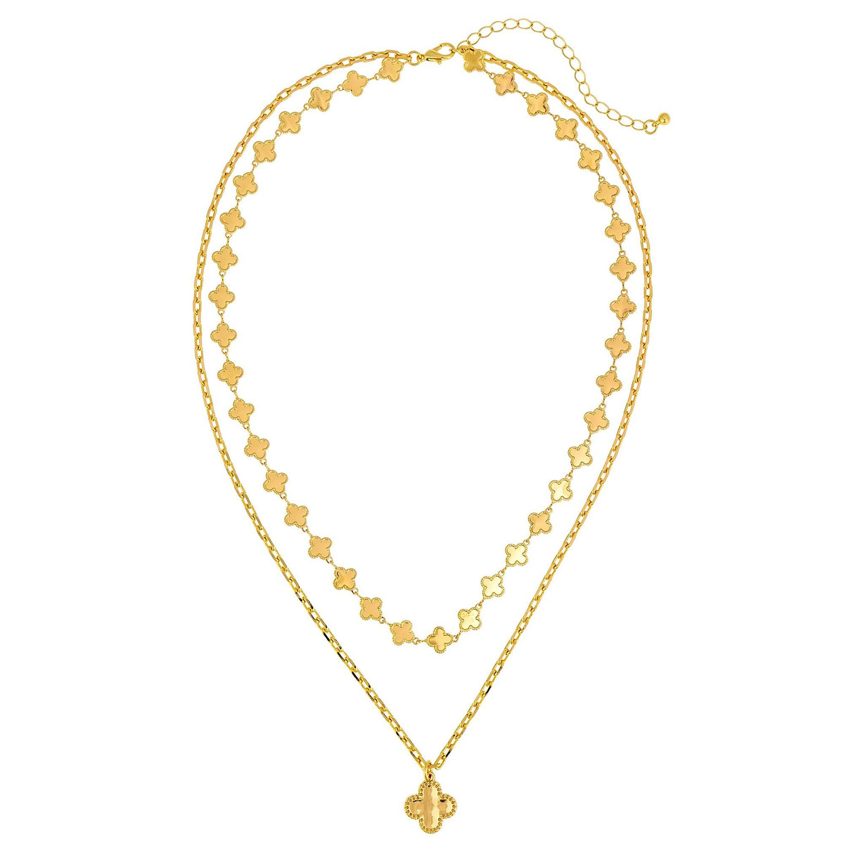 Dauplaise Jewelry Dual Chain Clover Necklace