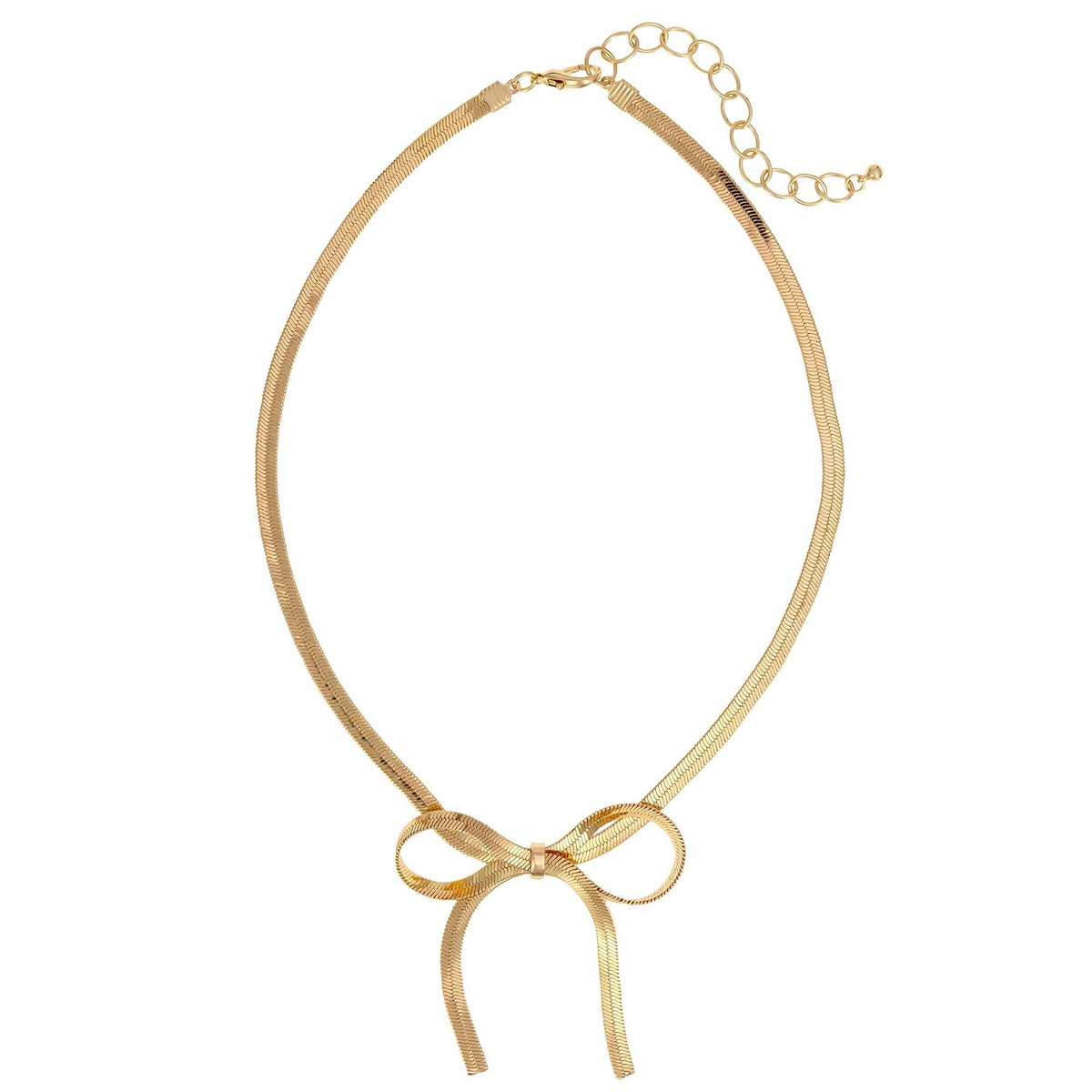 Elevate your style with the Dauplaise Jewelry Herringbone & Front Bow Necklace! This exquisite piece beautifully combines a classic herringbone chain with a charming front bow detail, creating a sophisticated yet playful accessory for any occasion.