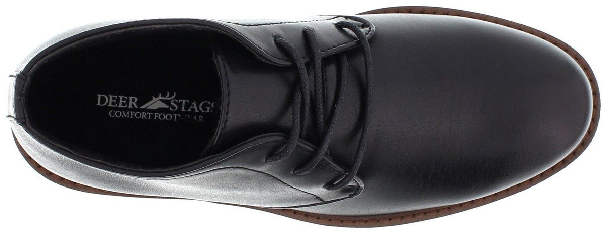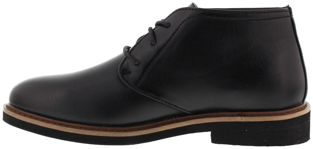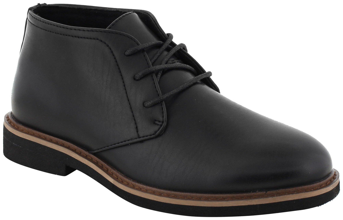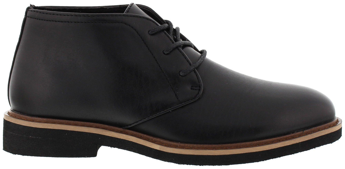 The classic chukka boot styling makes it easy to dress up for a special event, or dress down for a casual day at school. Cushioned EVA insole and outsole. The upper is made from simulated leather while the lining is a microfiber material. Lace-up style for the perfect fit.