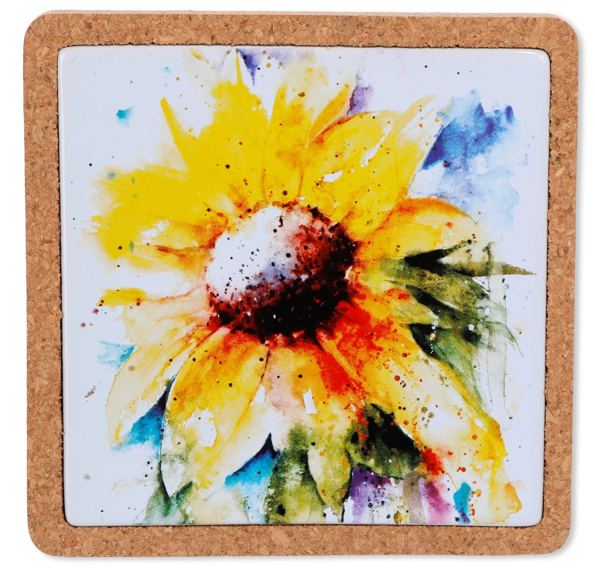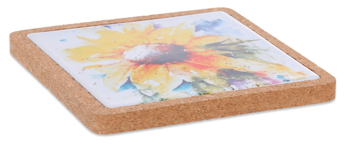 This Sunflower Cork Base Trivet is just what you need for your next gathering! It is also the perfect kitchen accessory to bring a pop of color to the room. This stoneware and cork serveware features artisan craftsmanship and is perfect for any entertaining. Measures approximately 7.5 in x 7.5 in.