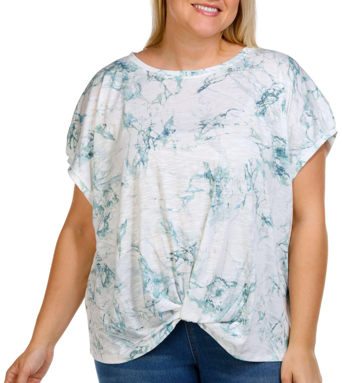 Introducing the Plus Short Sleeve Twist Hem Top, crafted from a blend of polyester, spandex, and rayon for a comfortable and flattering fit. This stylish top features a chic print, a scoop neckline, short sleeves, and a unique twist hem front. Perfect for both casual and dressy occasions, this versatile top adds a touch of elegance to any wardrobe.