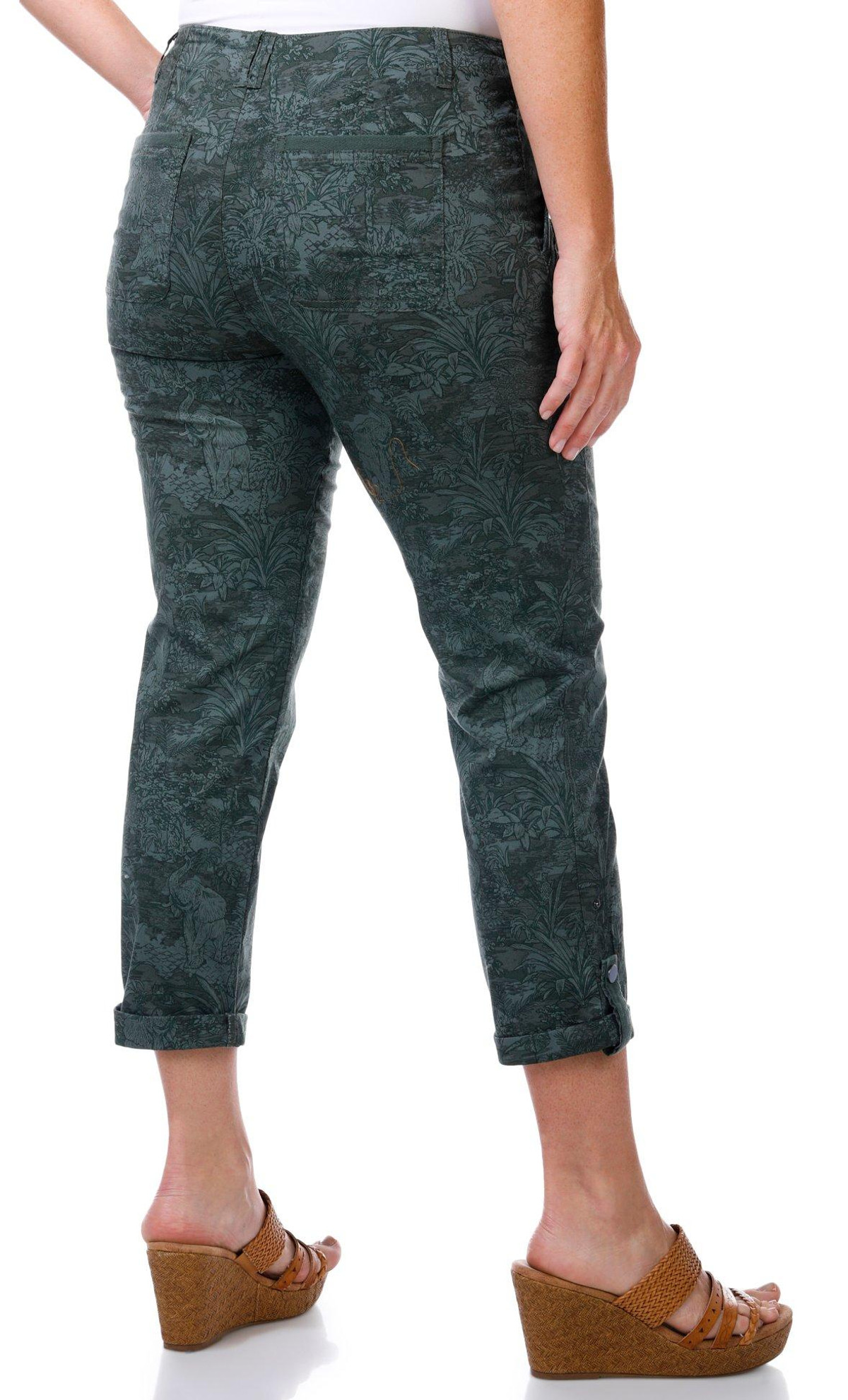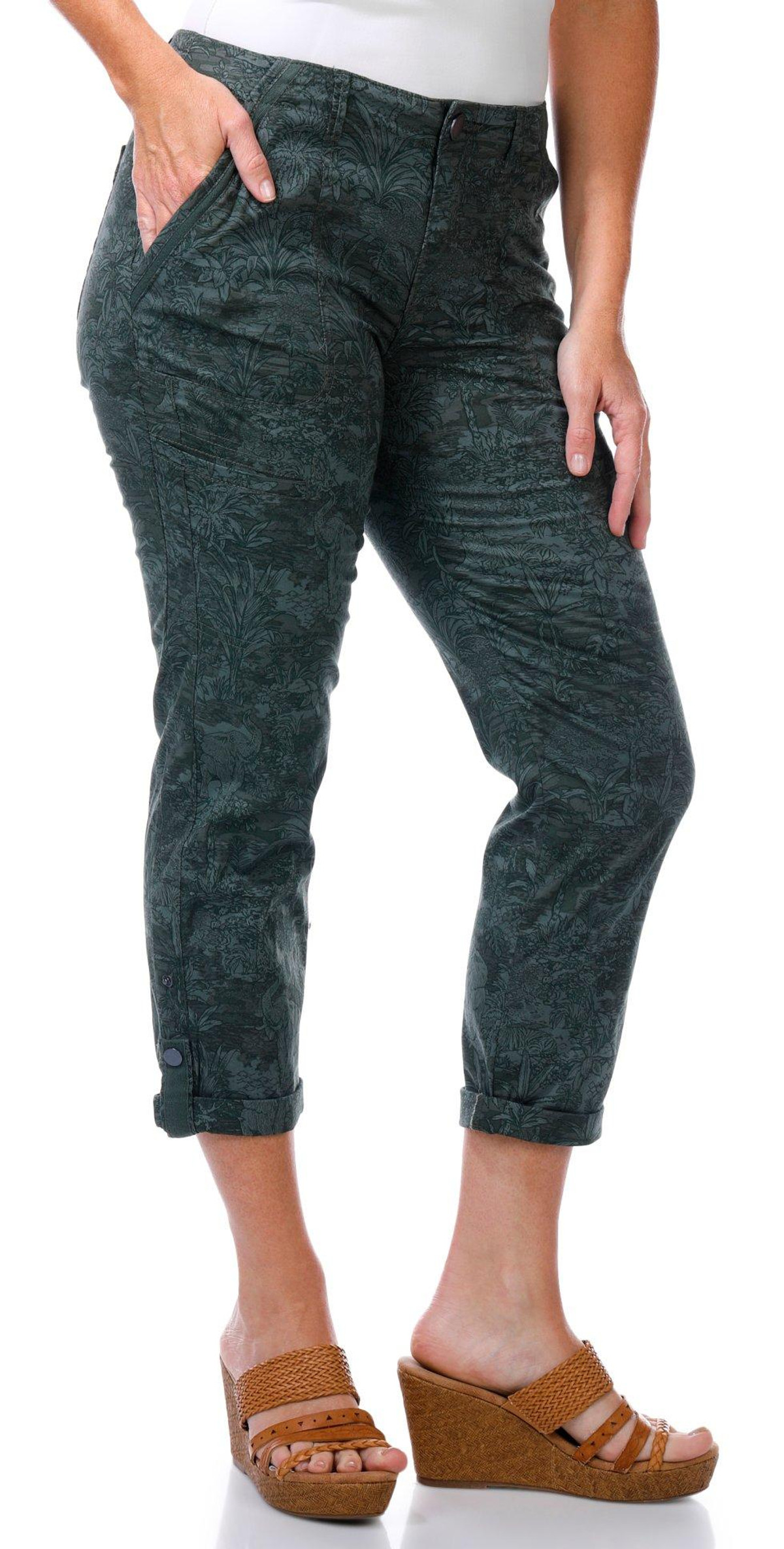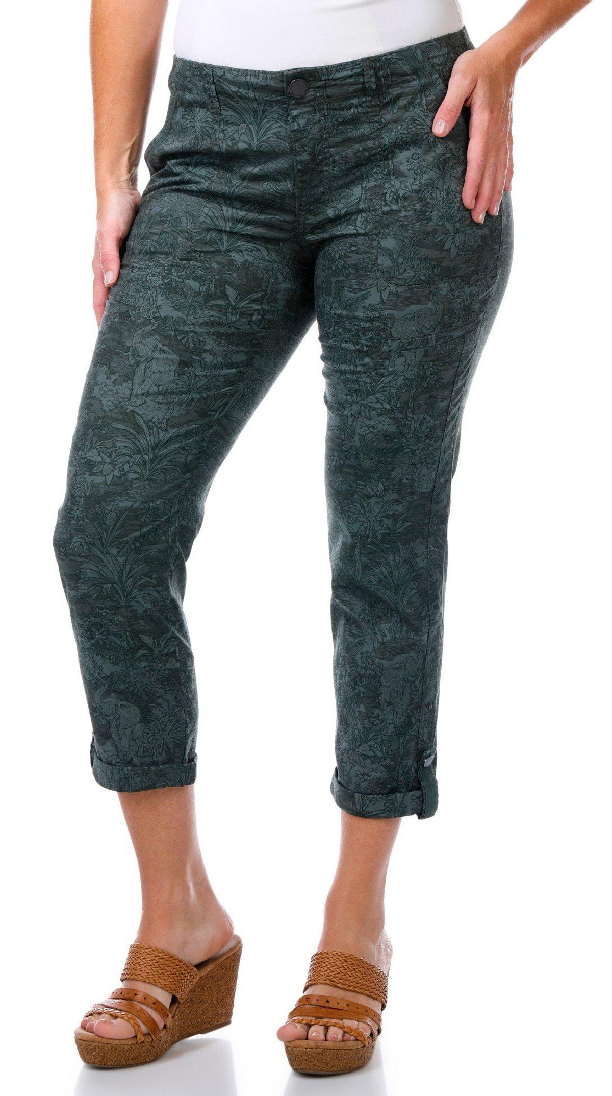 Step into effortless style with these Roll Tab Hem Print Capris. Featuring a leaf print, comfy drawstring waistband, and practical side, back, and utility pockets, they blend fashion with function. The 25-inch inseam and adjustable roll tab hem offer a flattering, customizable fit perfect for everyday wear.