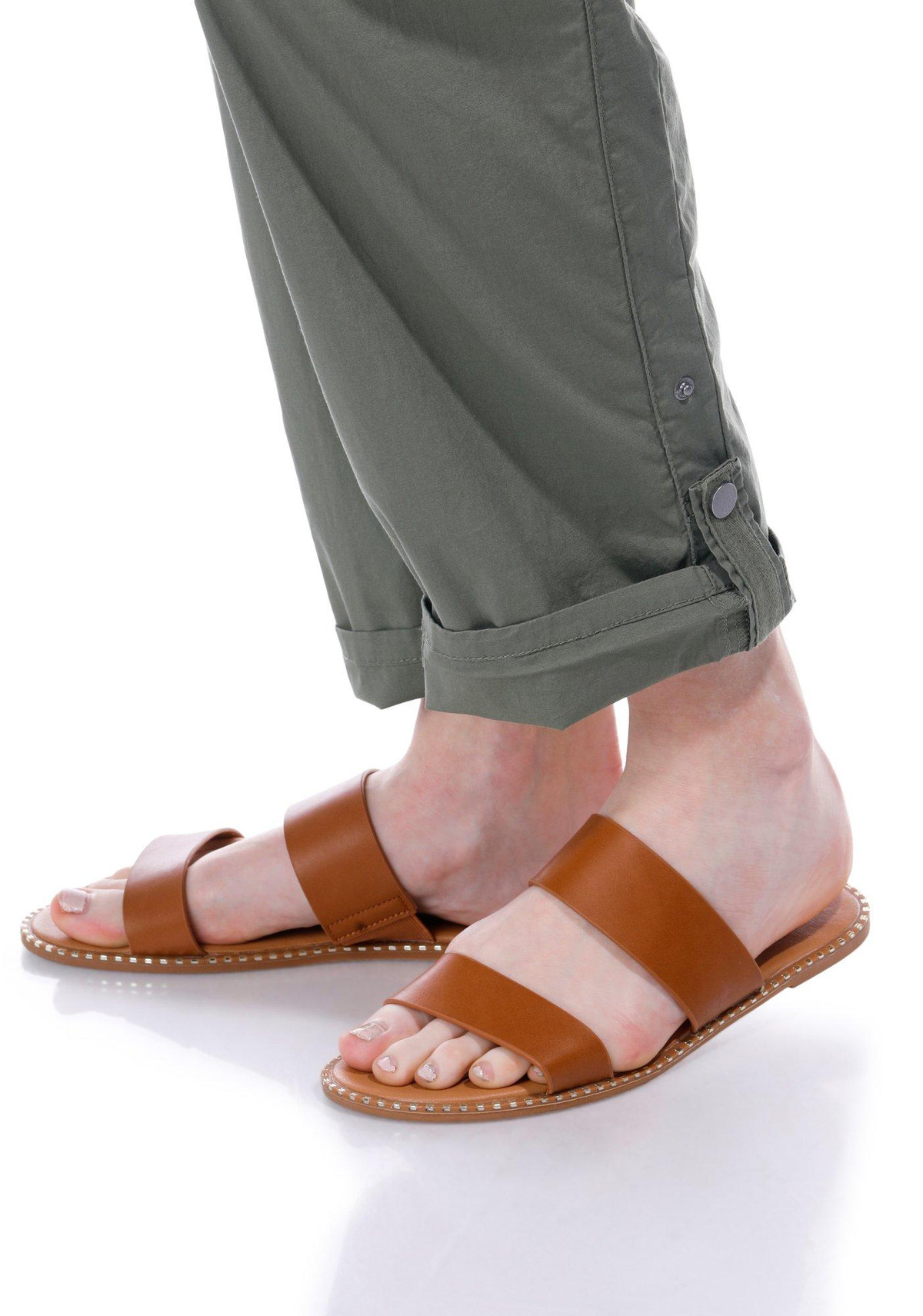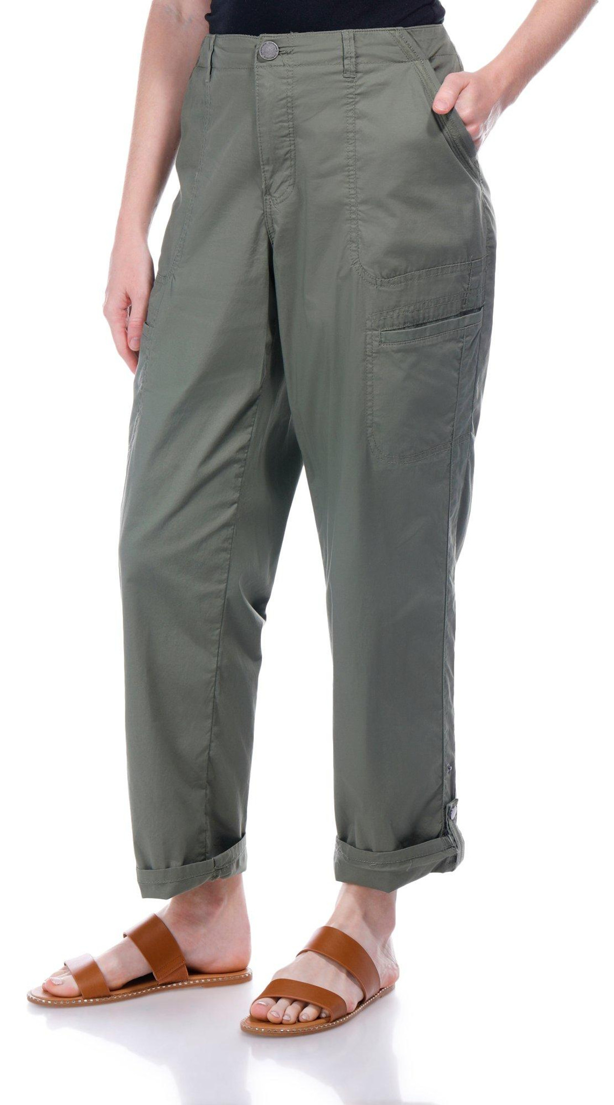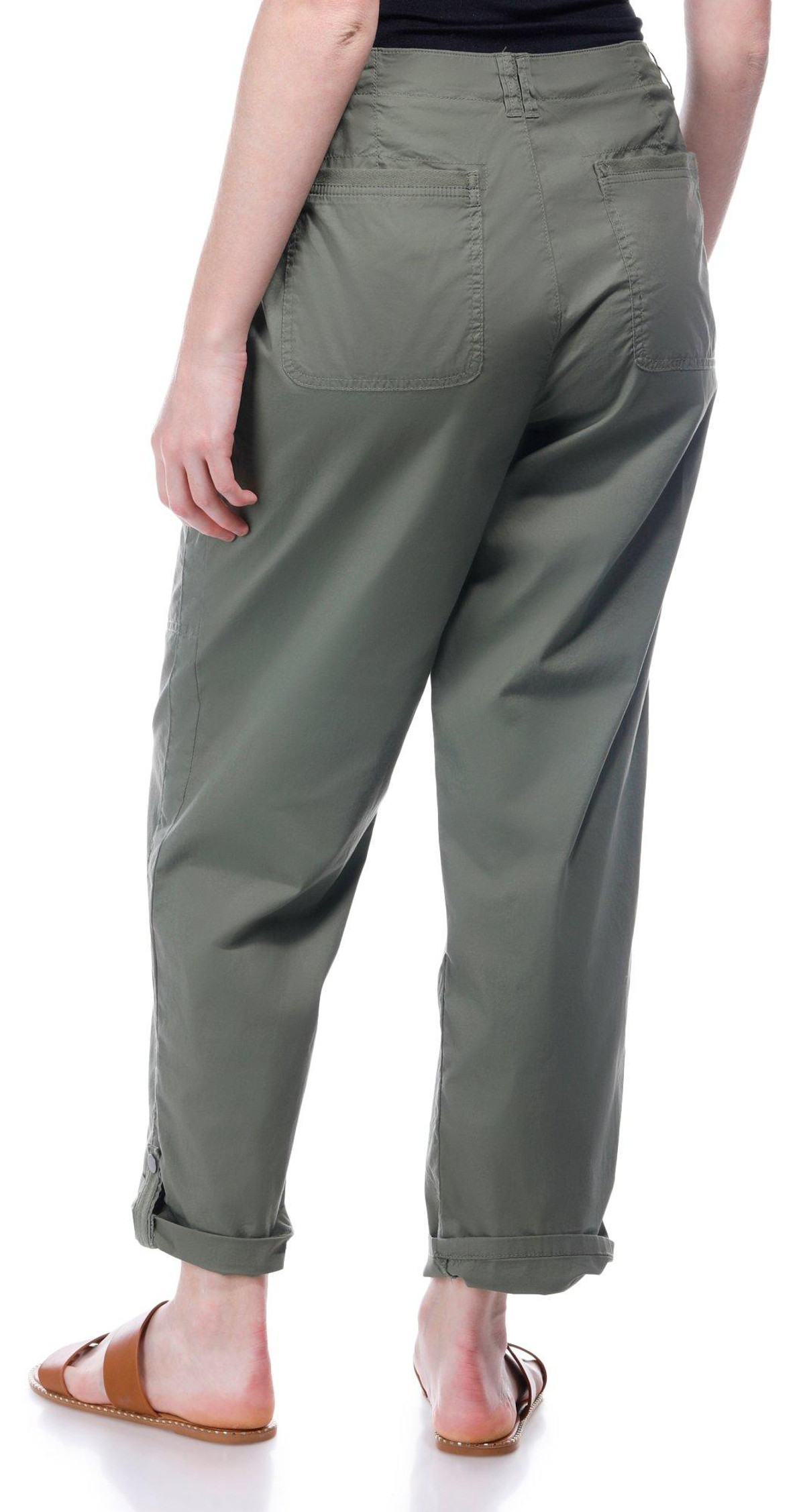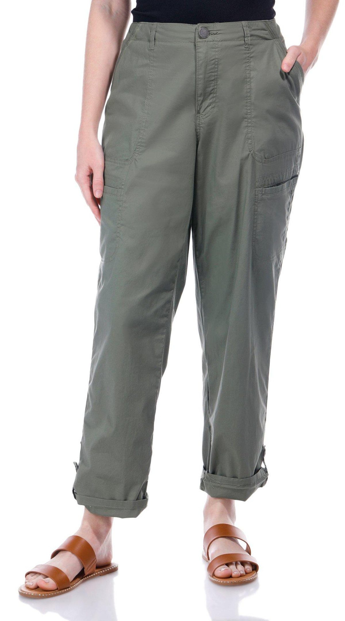 These stylish utility pants are exactly what your wardrobe needs to keep the adventure going! They feature a stylish solid color, button and zipper fly closure, buttoned roll-cuff hems, double front and rear pockets, and 2 additional utility pockets to keep your belongings safe on the go! Inseam measures approximately 25 in. Fabrication is 98% cotton and 2% spandex.
