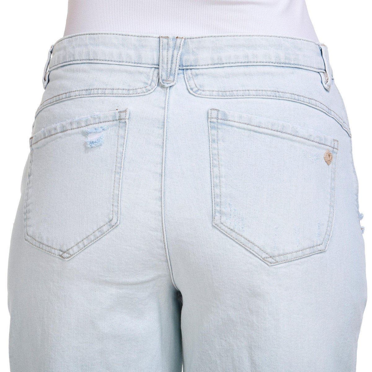 Add a relaxed edge to your wardrobe with these Womens 27 inch Wide Leg Boyfriend Jeans. Made from a comfy cotton-spandex blend, they feature a classic 5-pocket cut, button-fly zip closure, wide leg silhouette, and a trendy frayed hemperfect for laid-back, everyday style.