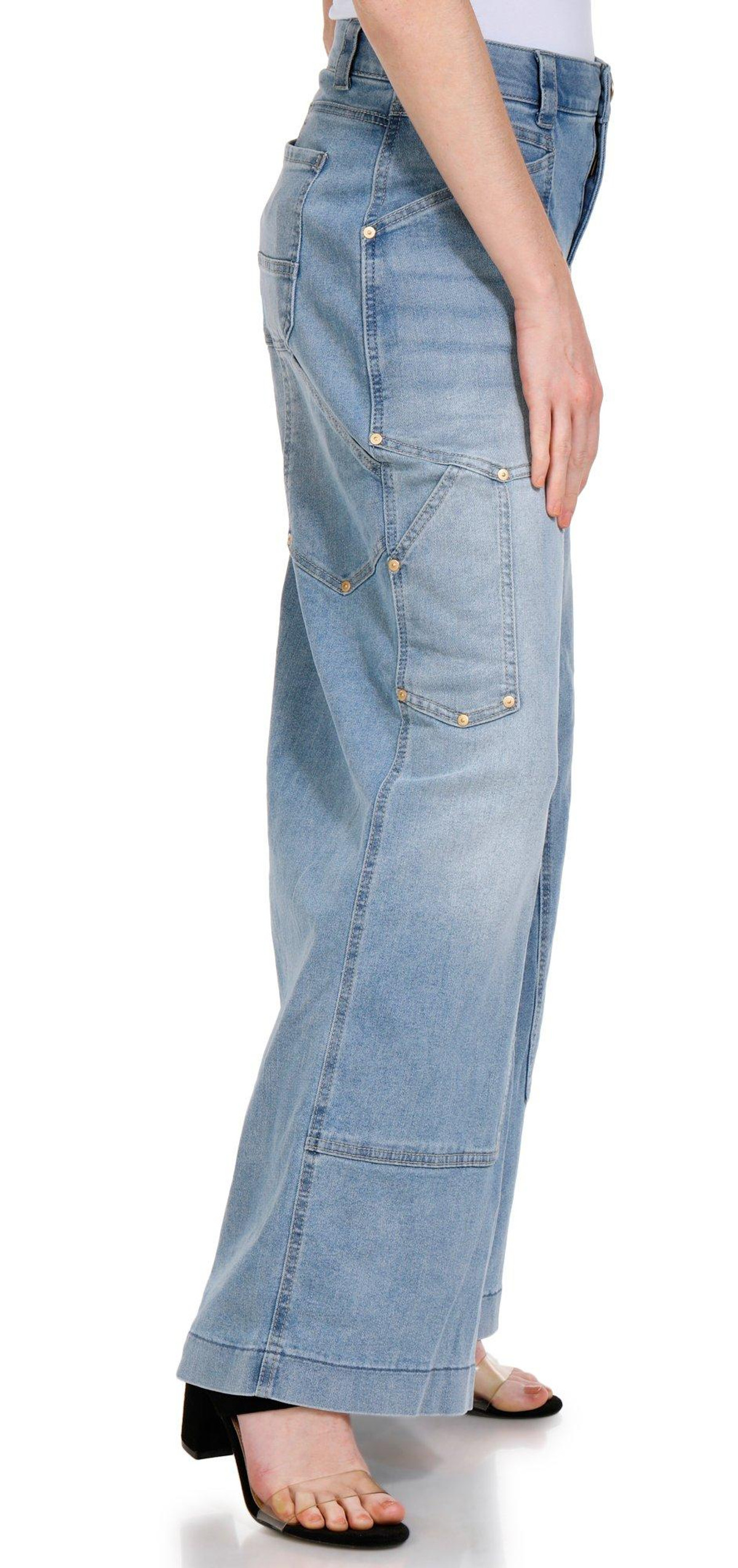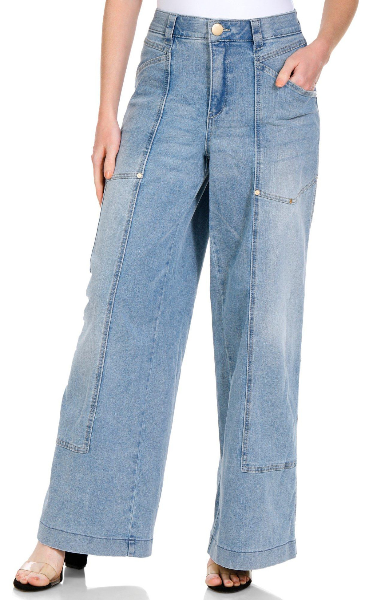 Elevate your casual wardrobe with our Women’s 32 in Ab-Solution Wide Leg Utility Jeans. Made from a durable blend of cotton, polyester, and spandex, these jeans offer both comfort and flexibility. Featuring front pockets, back pockets, and cargo/utility pockets, they provide ample storage for your essentials. The stylish wide leg fit and secure button zip fly closure add a modern touch, making these jeans a versatile and chic addition to any outfit.