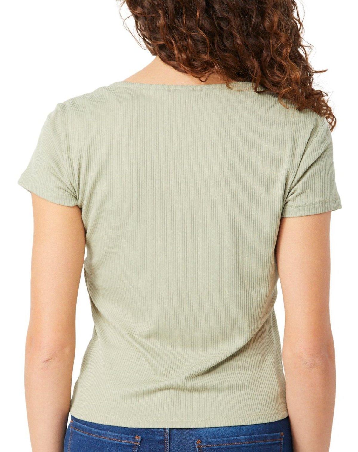 Upgrade your outfits with this simple and stylish short sleeve top! It features a ribbed fabric, scoop neckline, and a washed-style solid color design. The styling opportunities are endless! Fabrication is 92% polyester and 8% spandex.