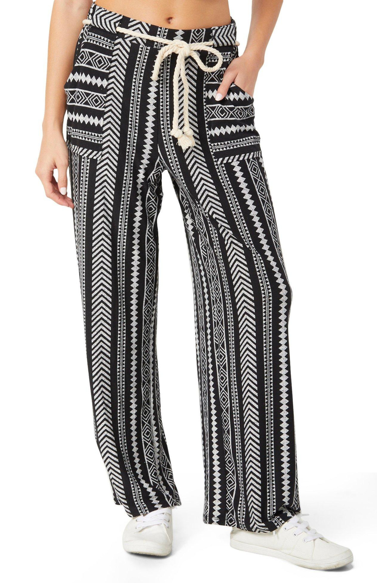 These striped Pants blend style and sustainability with a rope belt, double front slip pockets, and fabric made partially from recycled material. Lightweight and laid back, theyre perfect for effortless everyday wear with a conscious touch. Inseam measures approximately 30 in. Fabrication is 59% polyester, 33% recycled polyester, 8% spandex.