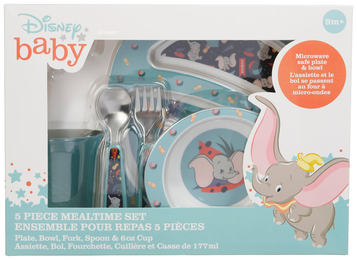 This 5 piece set includes a beautifully decorated plate, bowl, cup and cutlery with printed images of the beloved Dumbo in various adorable poses, alongside ‘Little One’ sentiment in silver lettering.