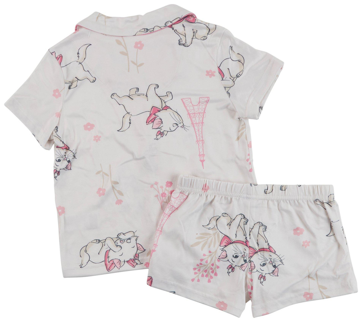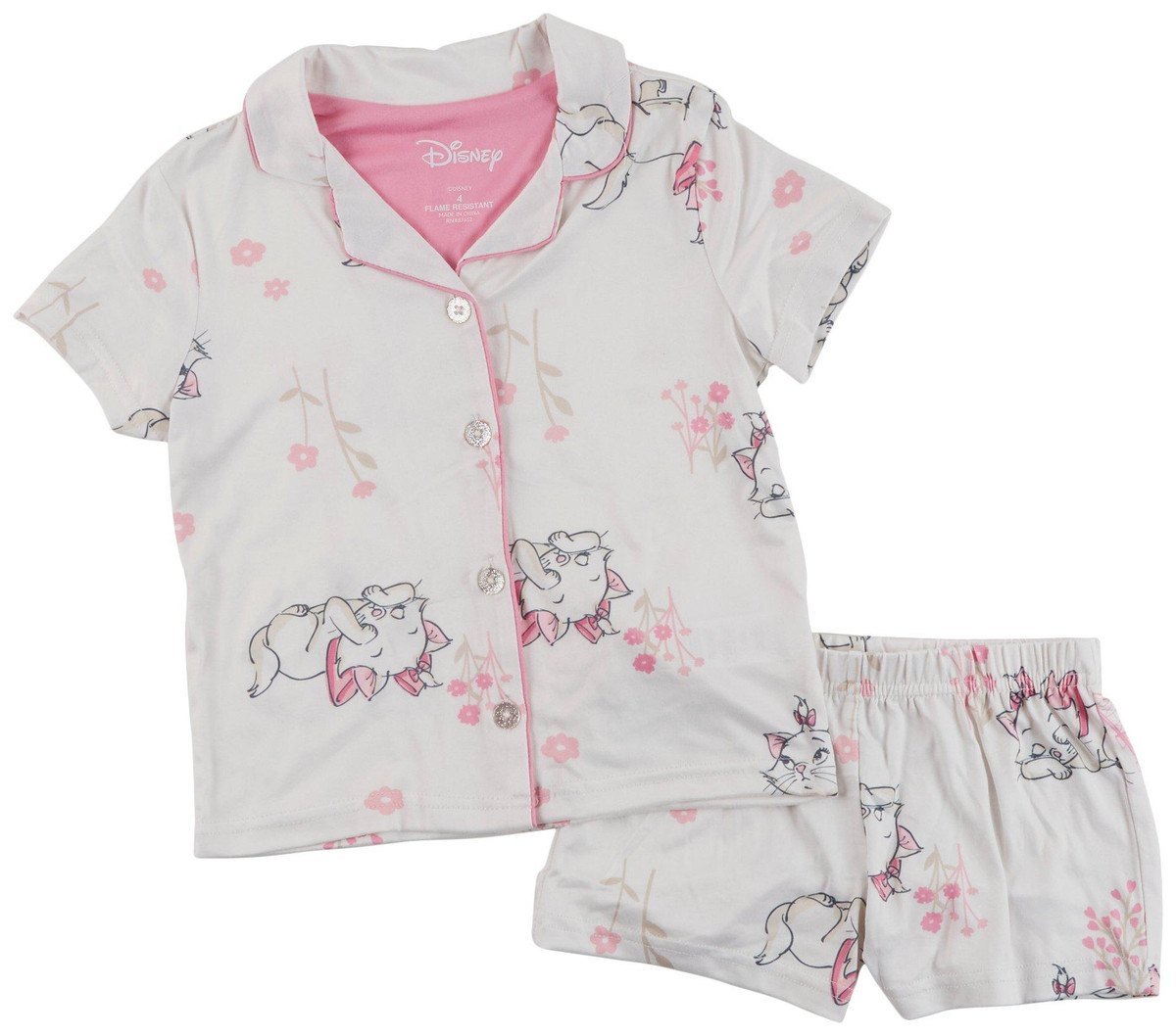 Make bedtime magical with this adorable Disney pajama short set for girls! Featuring a glitter-buttoned, button-down top with pink trim and comfy elastic waist shorts, its perfect for sleepovers or lounging. Soft, breathable fabric and beloved character prints make this little girls Disney sleepwear set a dreamy must-have for comfort and style.
