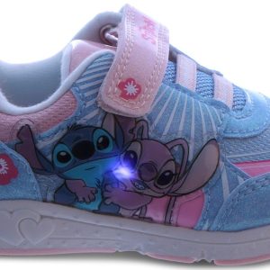 The Disney Lilo & Stitch Toddler Girls Velcro Court Shoes bring fun and comfort to every step. Featuring vibrant Lilo & Stitch graphics, these shoes have an easy-to-use Velcro strap for a secure fit. With a cushioned insole and durable outsole, theyre perfect for active toddlers, combining playful style with all-day comfort.