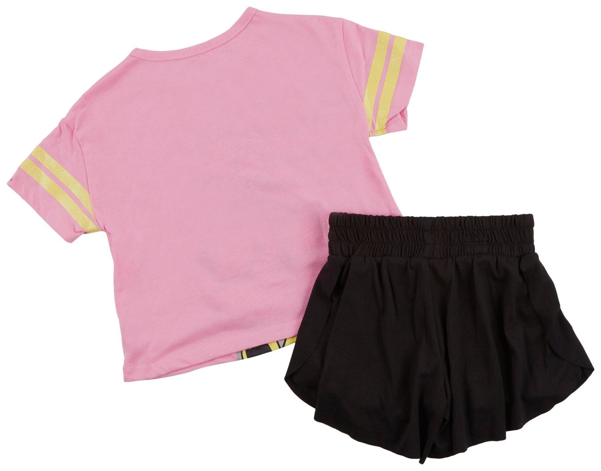 This 2 piece set brings Disney magic to everyday play with a cute Minnie Mouse tee and comfy elastic waist shorts. The soft, breathable fabric keeps her cool and happy, while the playful print adds a pop of fun.
