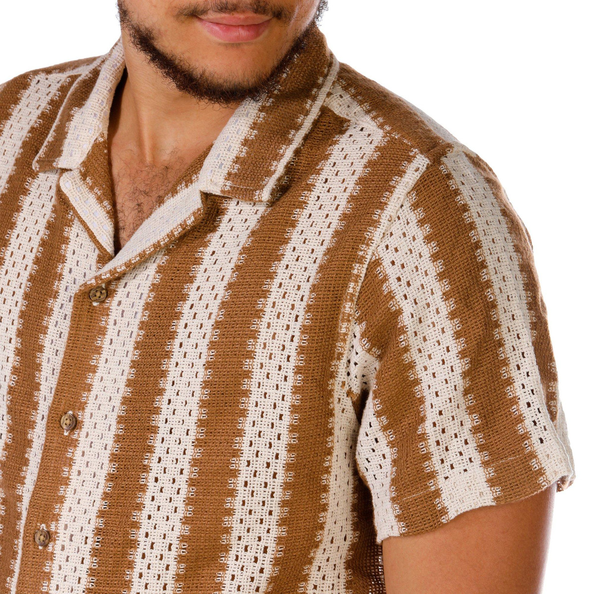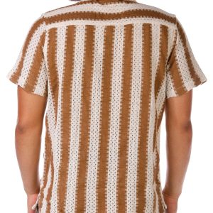 Keep it cool and classic with a striped short sleeve shirt featuring an open weave for extra breathability. The buttoned front adds a timeless touch, making it ideal for warm-weather days, laid-back outings, or effortless layering. Fabrication is 51% cotton, 49% polyester.