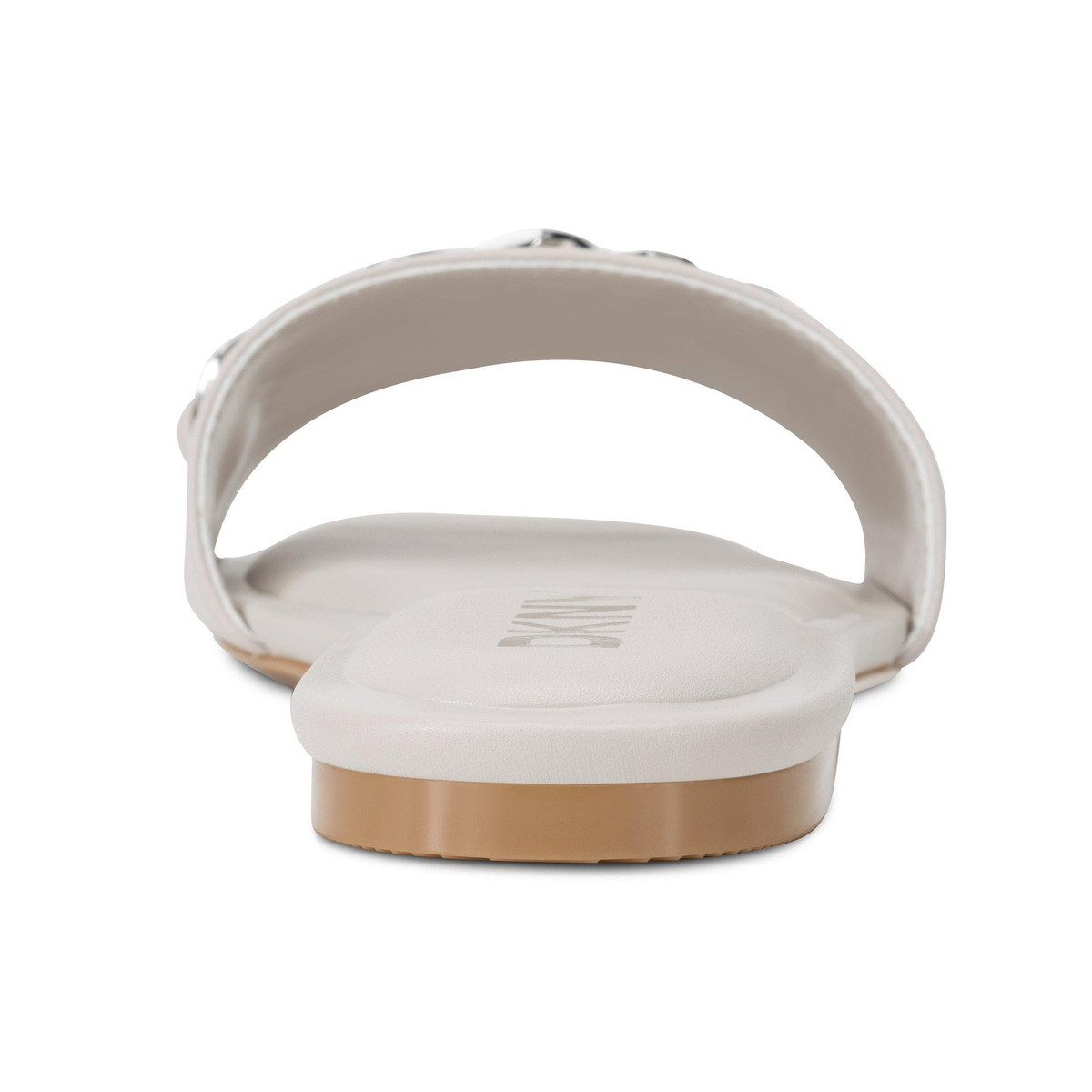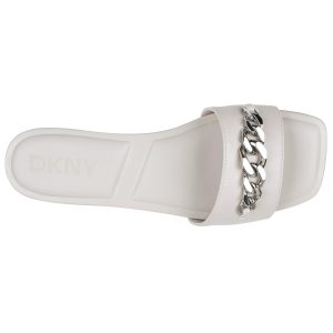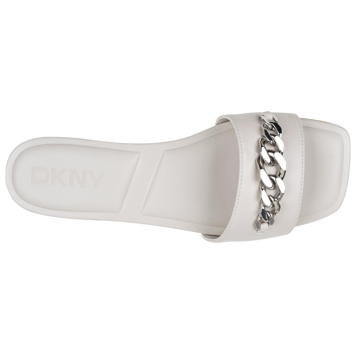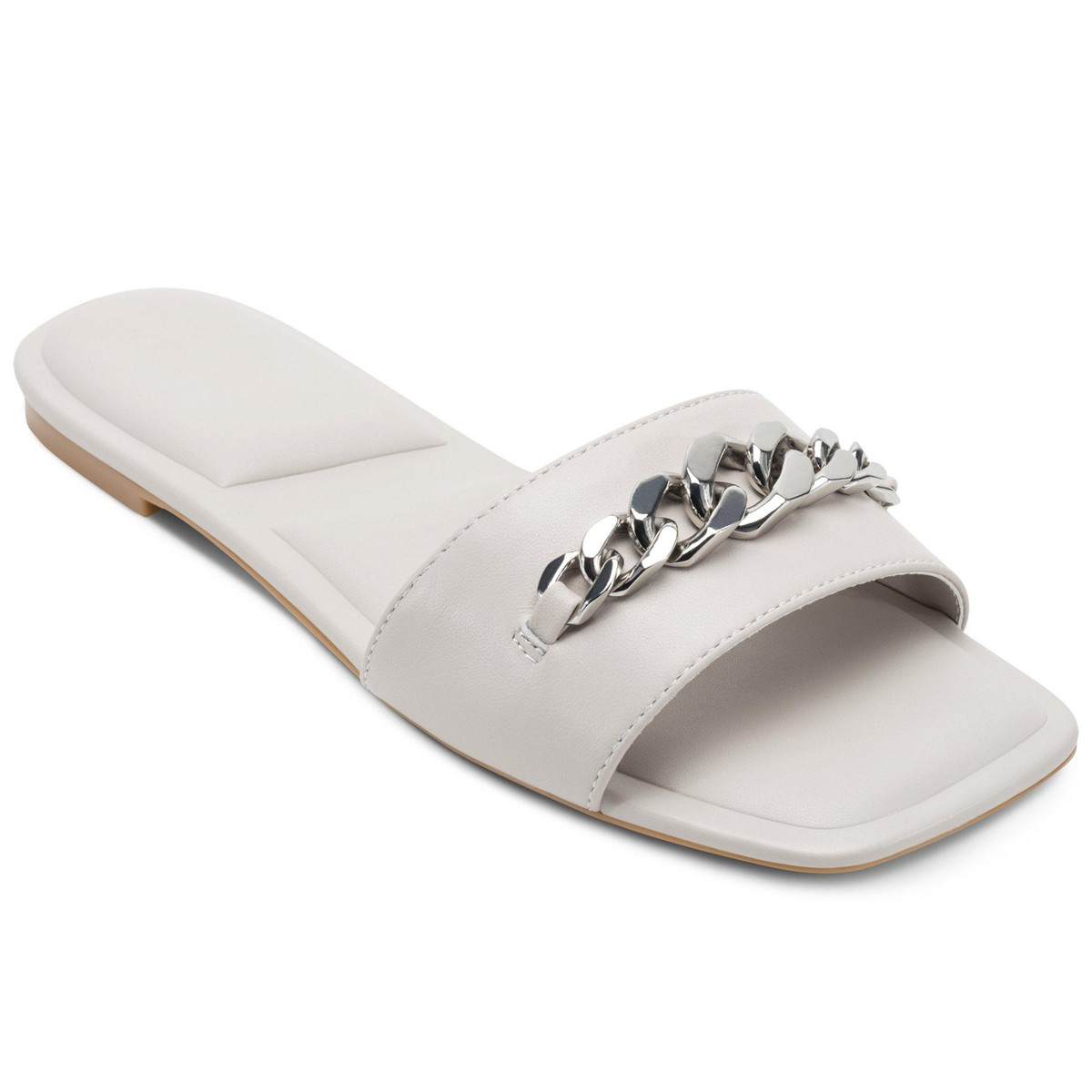 Polished chain-link hardware enriches the upper of a square-toe slide sandal set on a cushioned footbed that provides lasting comfort.