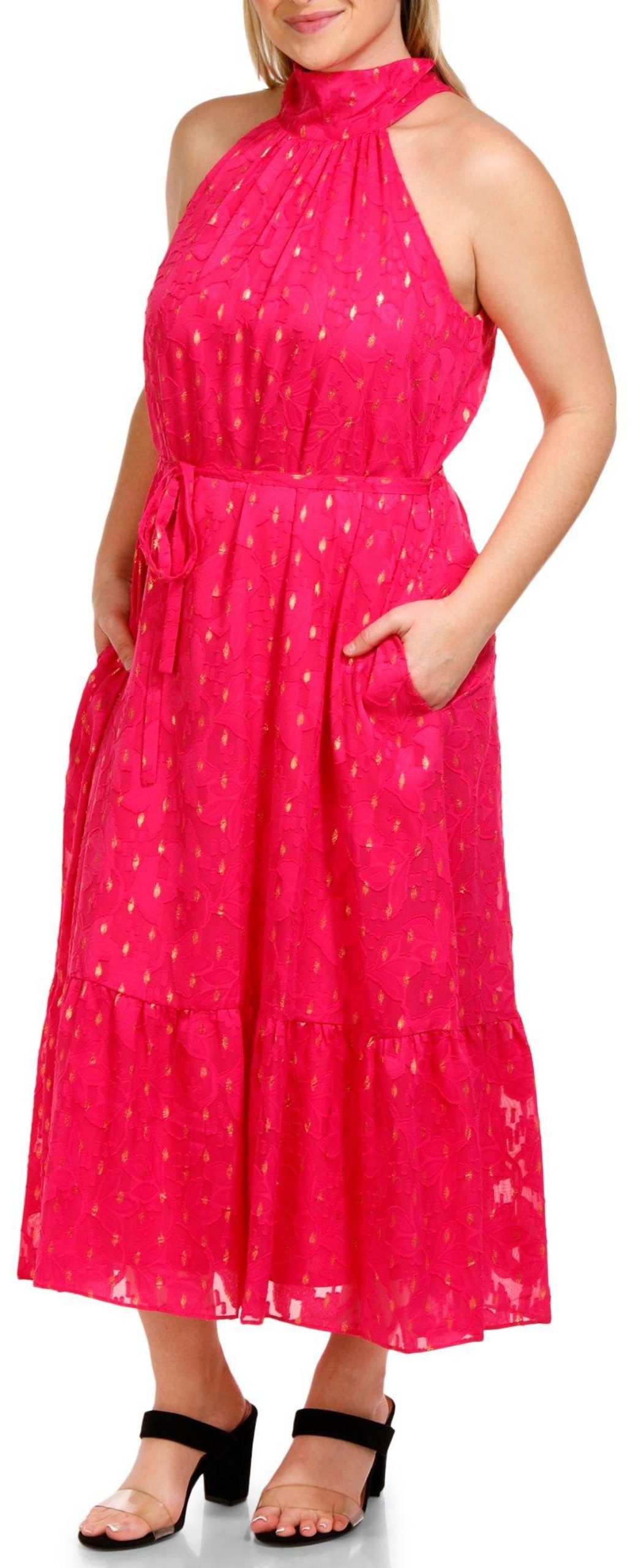 Introducing our Women’s Halter Tier Foil Midi Dress, a stunning addition to your wardrobe. Made from 100% polyester, this dress features a stylish embroidered design with eye-catching foil details. The halter neckline adds a touch of elegance, while the tiered look provides a flattering silhouette. With a 44-inch length, this midi dress is perfect for any special occasion, combining sophistication and modern style.