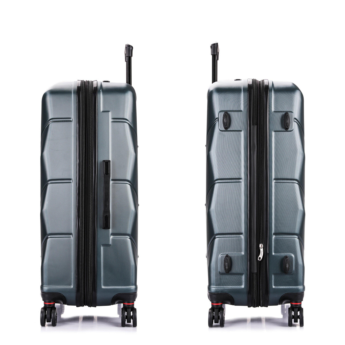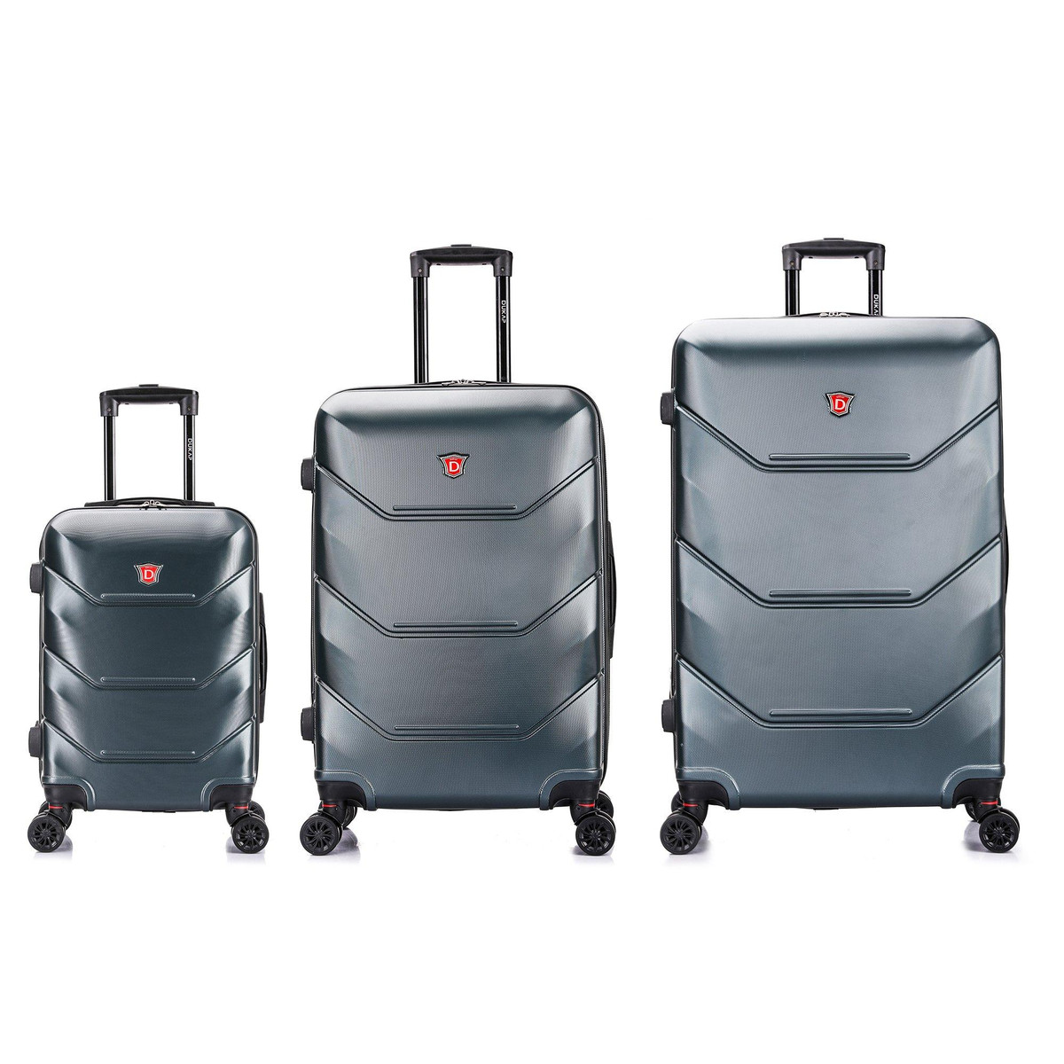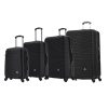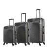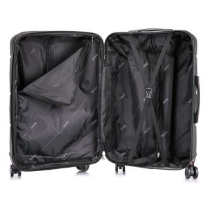 Features: 4 dual spinner 360° silent wheels for effortless mobility, Full interior fabric lining with zippered compartment on one side and snap-on straps on the opposite side for easy packing, Top and side ergonomic GEL handles for comfortable and easy lifting, 4 side studs that allows the luggage to stand upright , Push Button Locking internal retractable trolley system and Smooth gliding oversized zippers. Suitcase measures: 20: 16 x 9.5 x 23; 26: 19 x 12 x 28; 30: 21 x 13 x 32.
