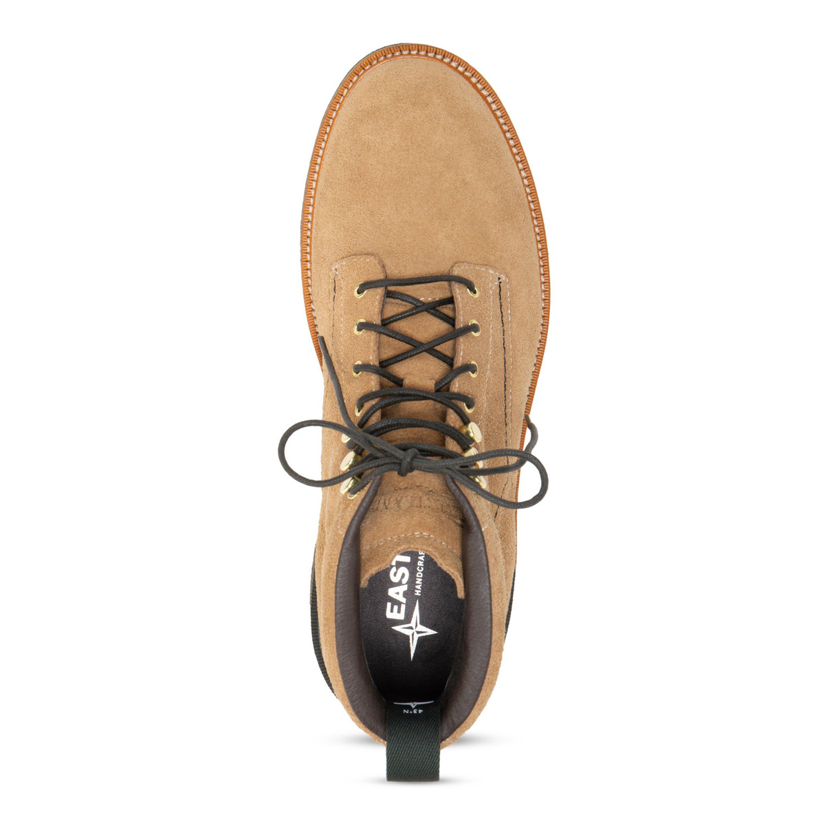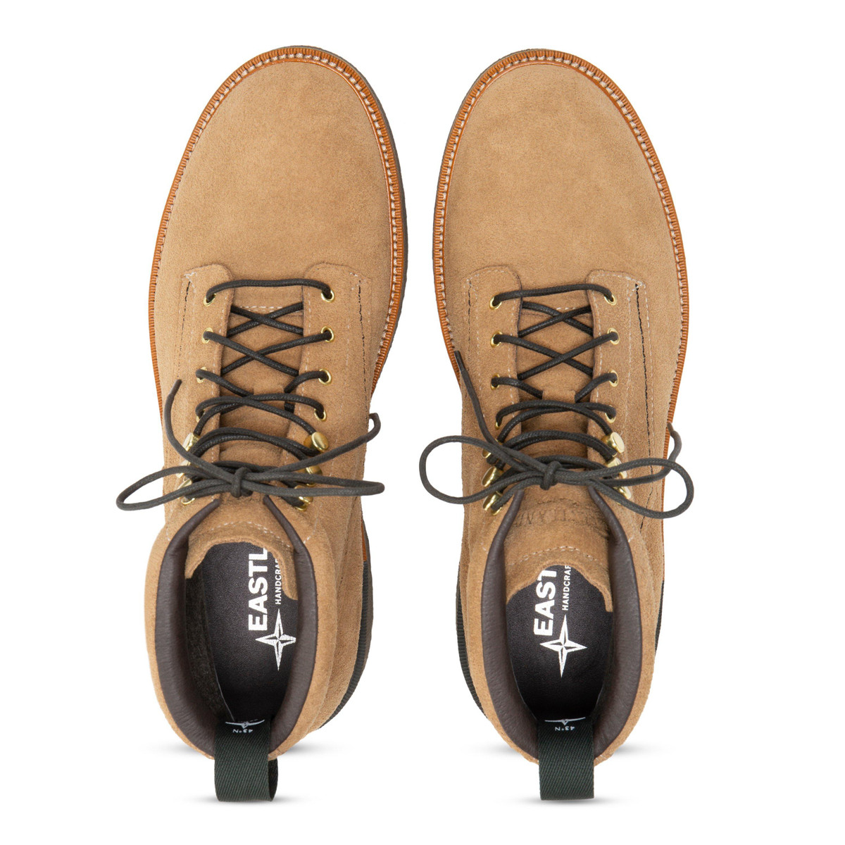 The Eastland Allagash Standard plain toe boot features a premium full grain or suede leather upper with contrast stitching and a heavy-duty rubber lug outsole. Premium leather or suede upper. Lace-up securely with the Anchor Speedhooks that snap laces in place for a secure fit. Once the laces are locked in, simply pull to loosen or tighten your boots for easy on and off. Fully-lined, cushioned insole for all-day comfort. Boot height 5 in. Heel height 1.25 in.