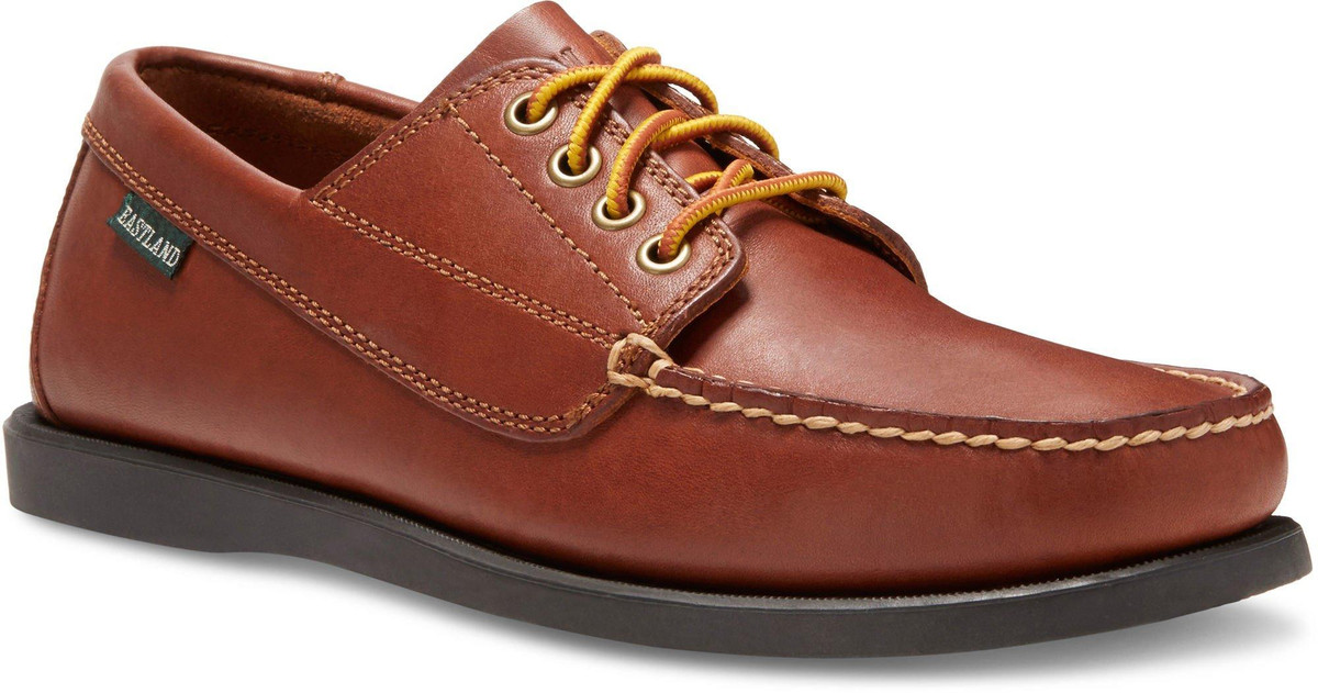 The hand-sewn moccasin construction features an easy-to-care-for full grain leather upper. The fully lined, cushioned insole and supportive shank reduces foot and leg fatigue while the shock absorbing, flexible natural rubber outsole offers durability and traction.