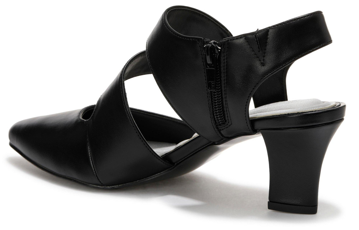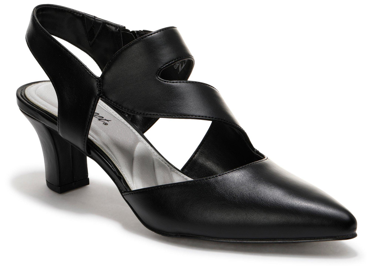 Add elegance to your look with the venue heels. The asymmetrical design, enhances its pretty heel and tapered toe. Comfort features include inside goring and zipper for a custom fit, padded insole and a flexible outsole for effortless wear.