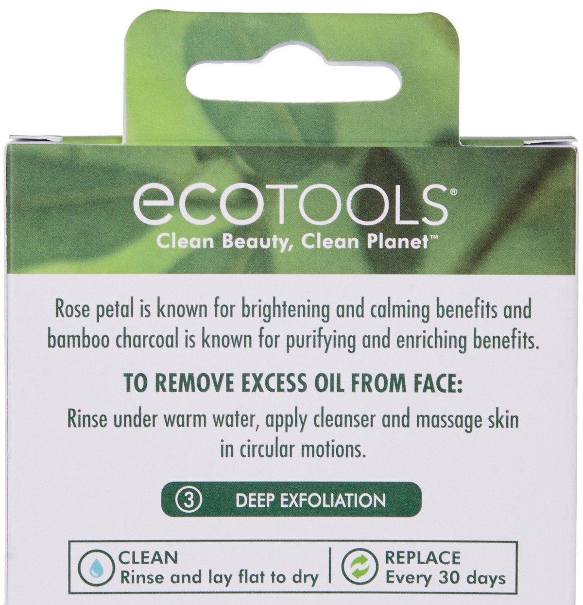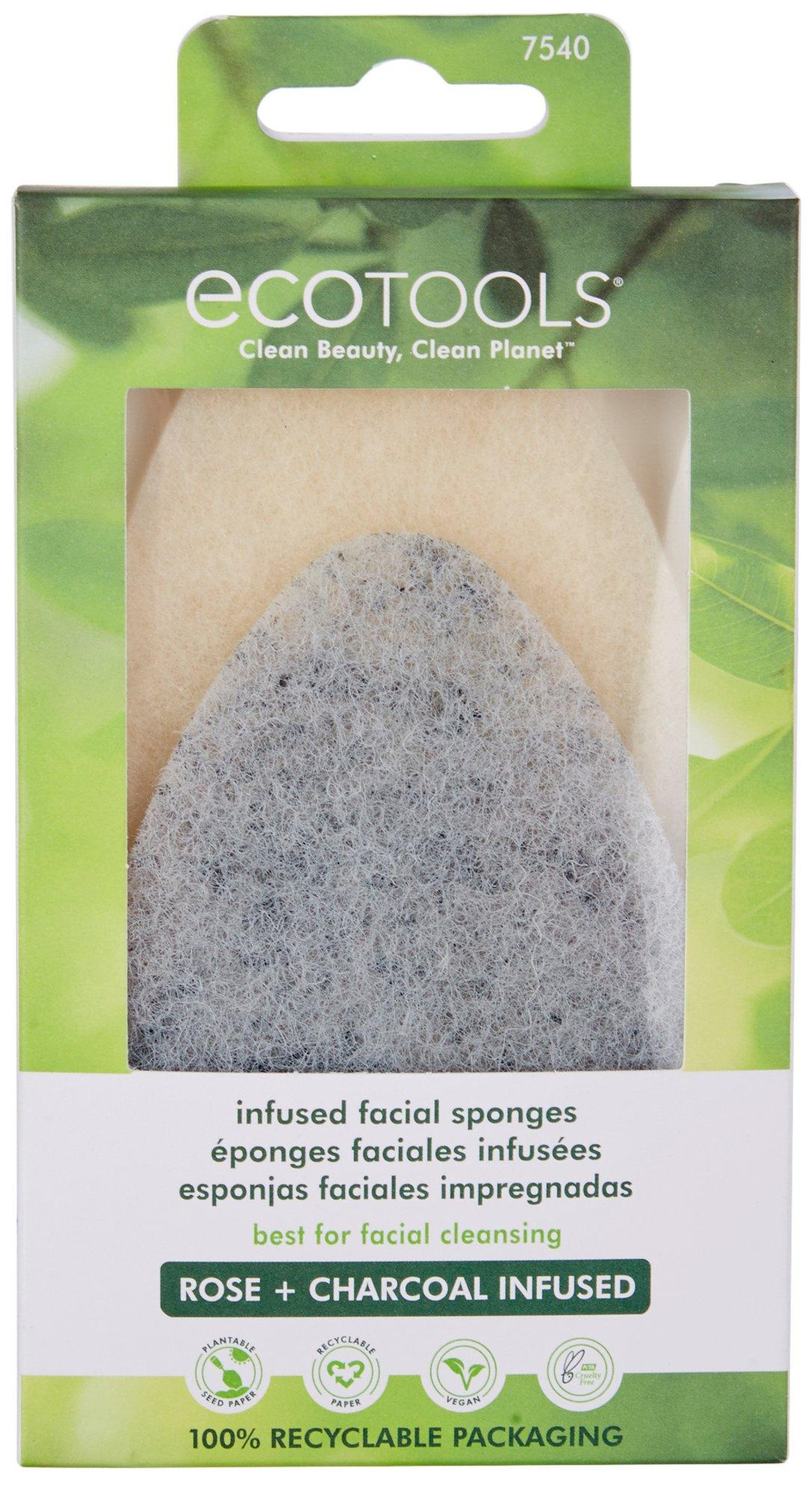 This Ecotools 2-Pk. Infused Facial Sponges remove excess oil from the face. Infused with rose and charcoal. Replace every 30 days. Contains 2 sponges.