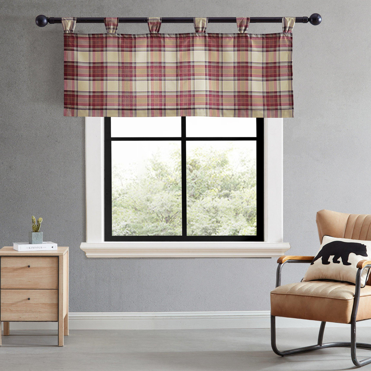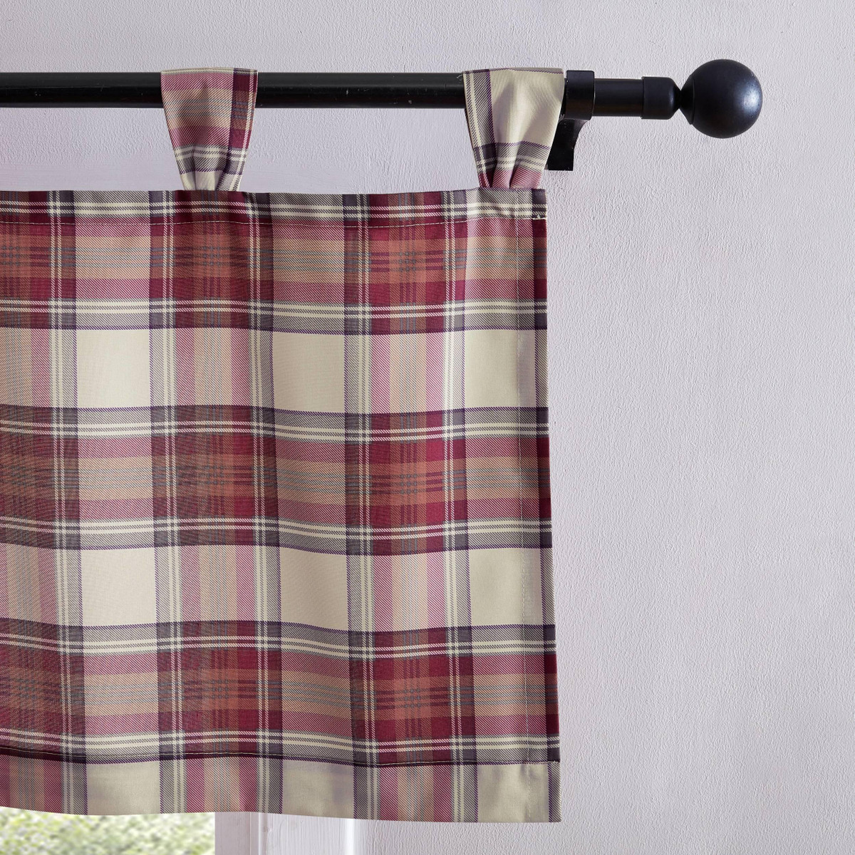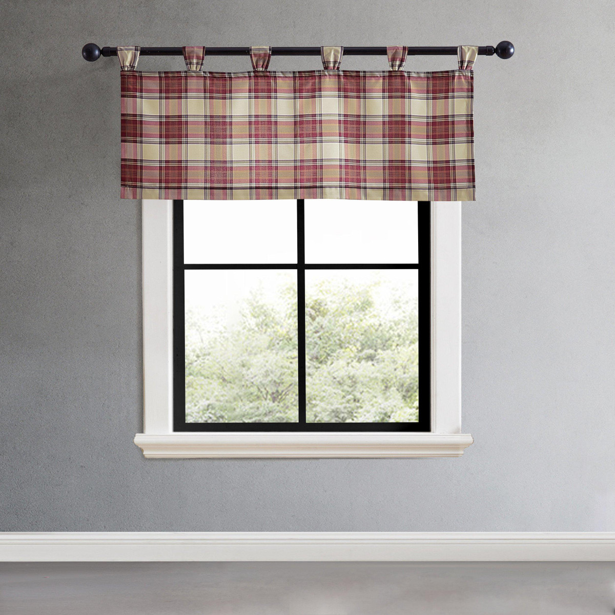 Introducing the new Eddie Bauer valance collection. The Edgewood Plaid Tab Top Valance is a must-have to upgrade any room in your home. Crafted from 100% polyester, the valance is insulating, durable and easy care. The tab top construction is an added design element that allows the curtain rod to remain visible. Each valance is sold separately and measures 20 in. x 50 in. Machine washable. Complete the look with the Edgewood Plaid bedding set from Eddie Bauer, sold separately.