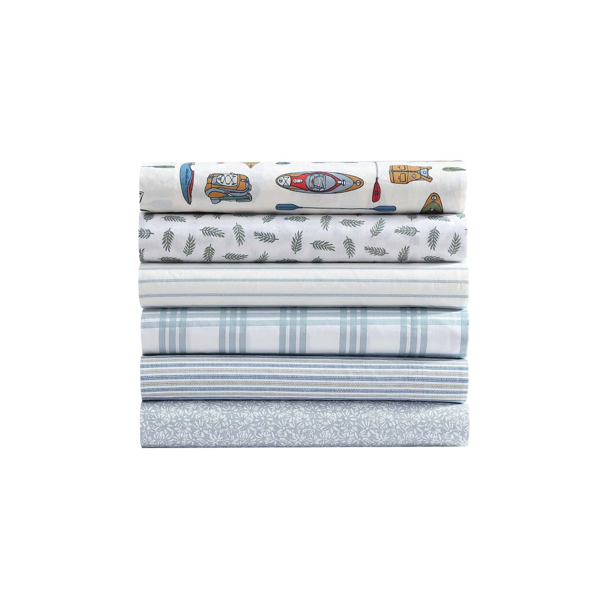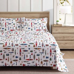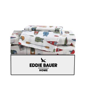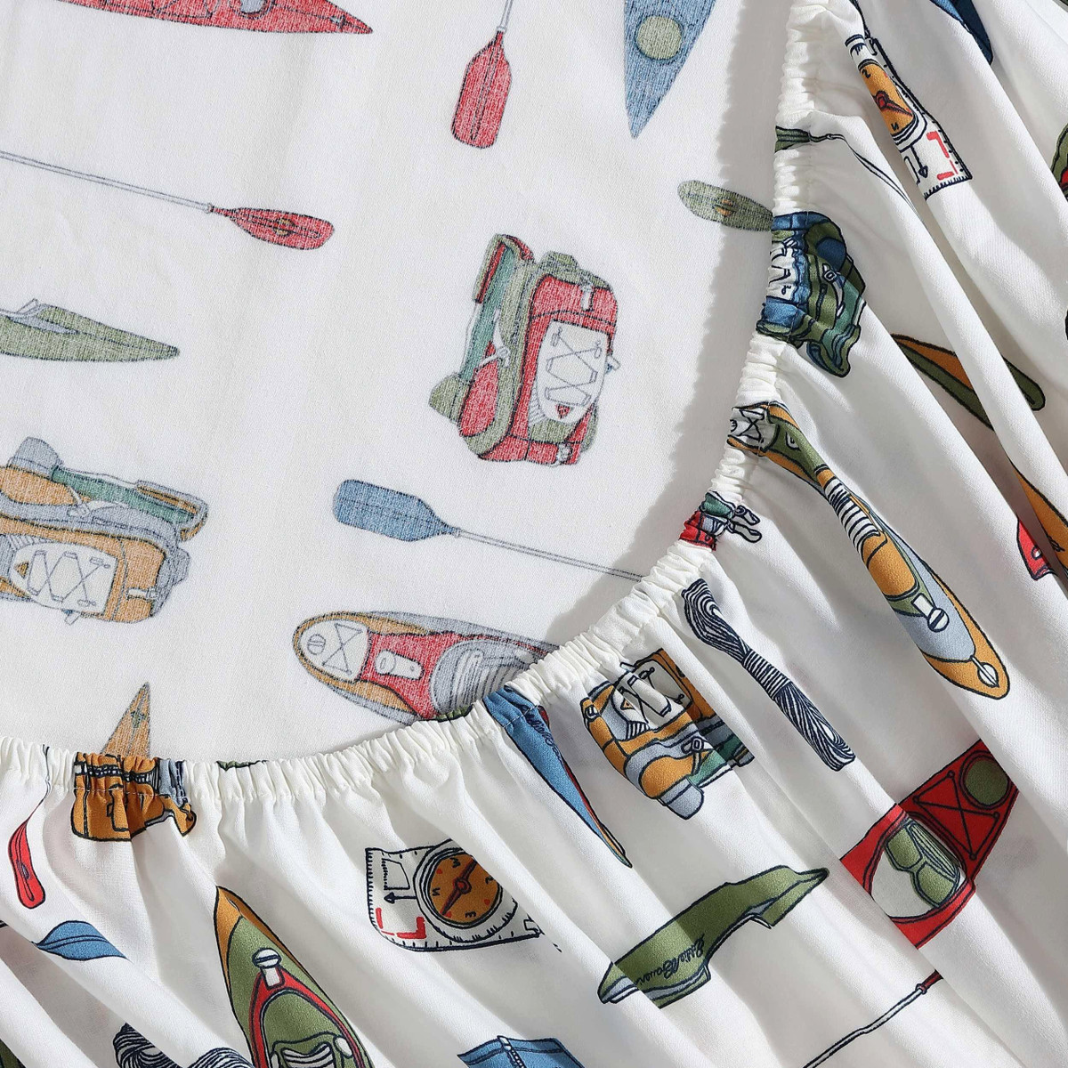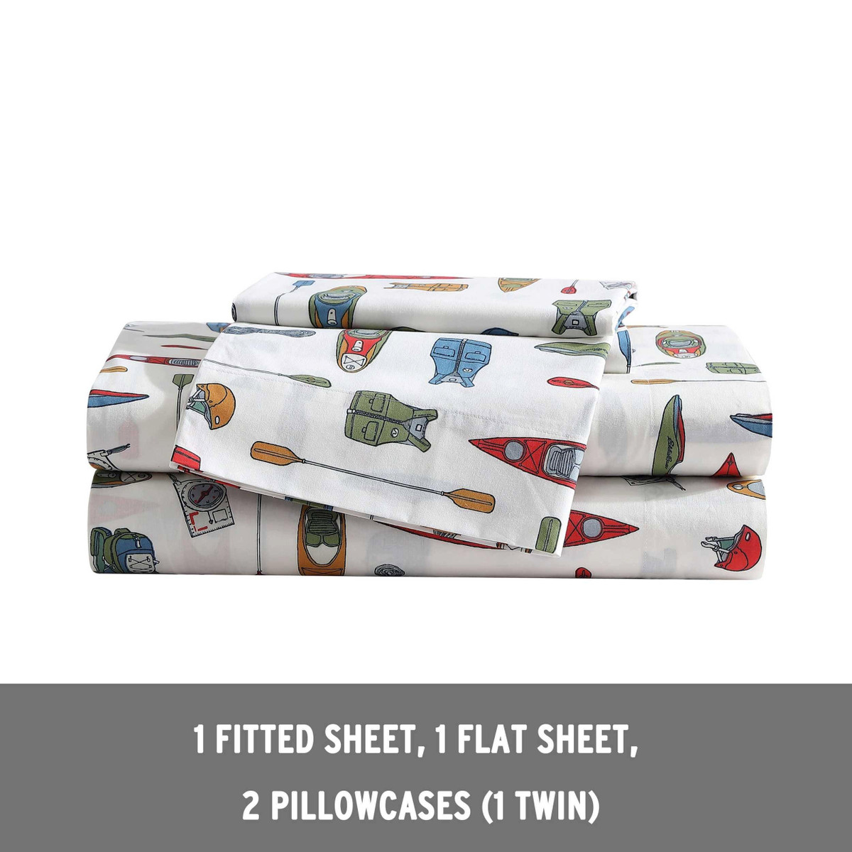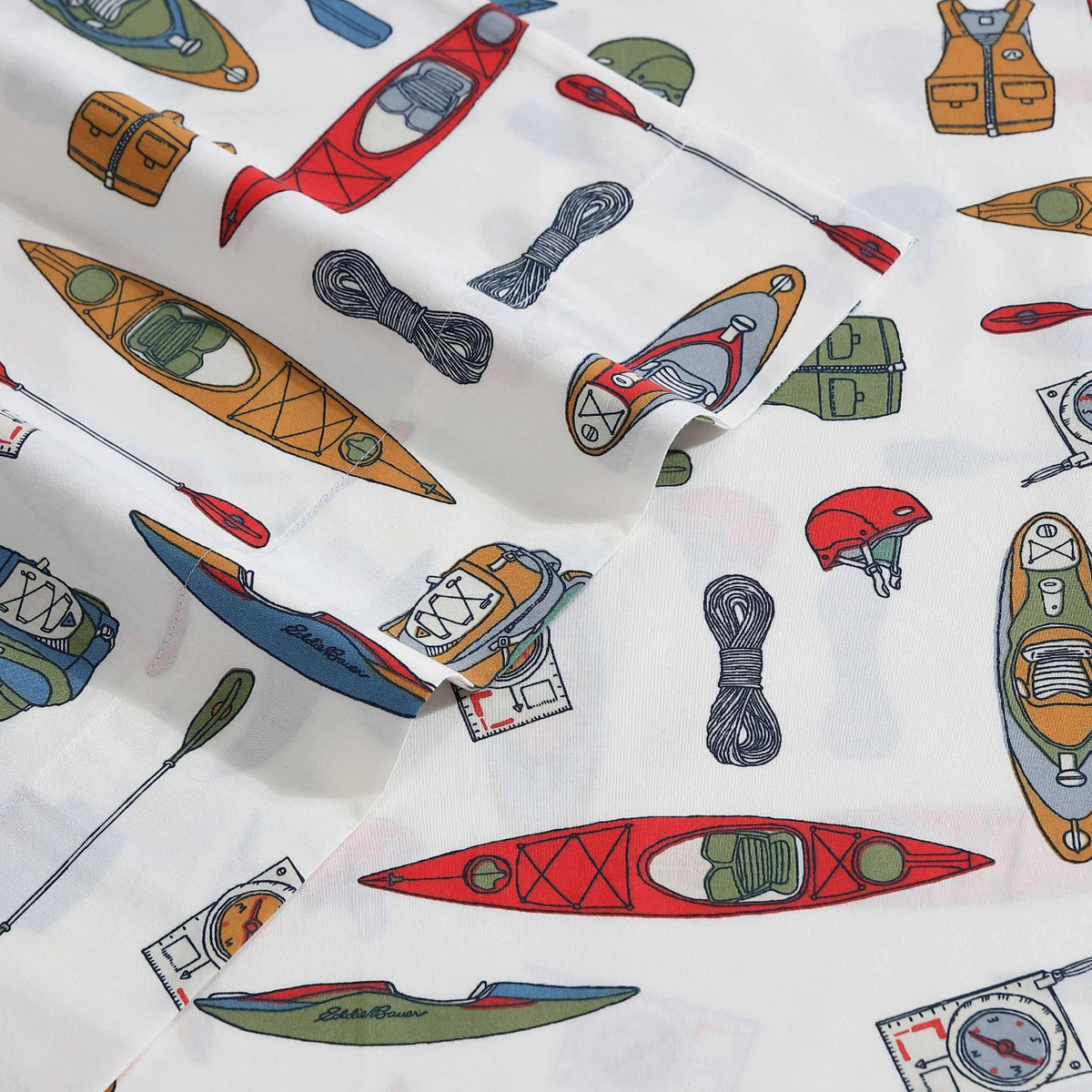 Add a splash of adventure to your bedding with the Eddie Bauer Kayak Adventure Sheet Set. Featuring colorful kayak prints on crisp, breathable 100% cotton percale, this set brings the spirit of the outdoors inside. The fitted sheet is fully elasticized for a secure fit, and OEKO-TEX certified dyes ensure eco-friendly comfort. Machine washable for easy care.