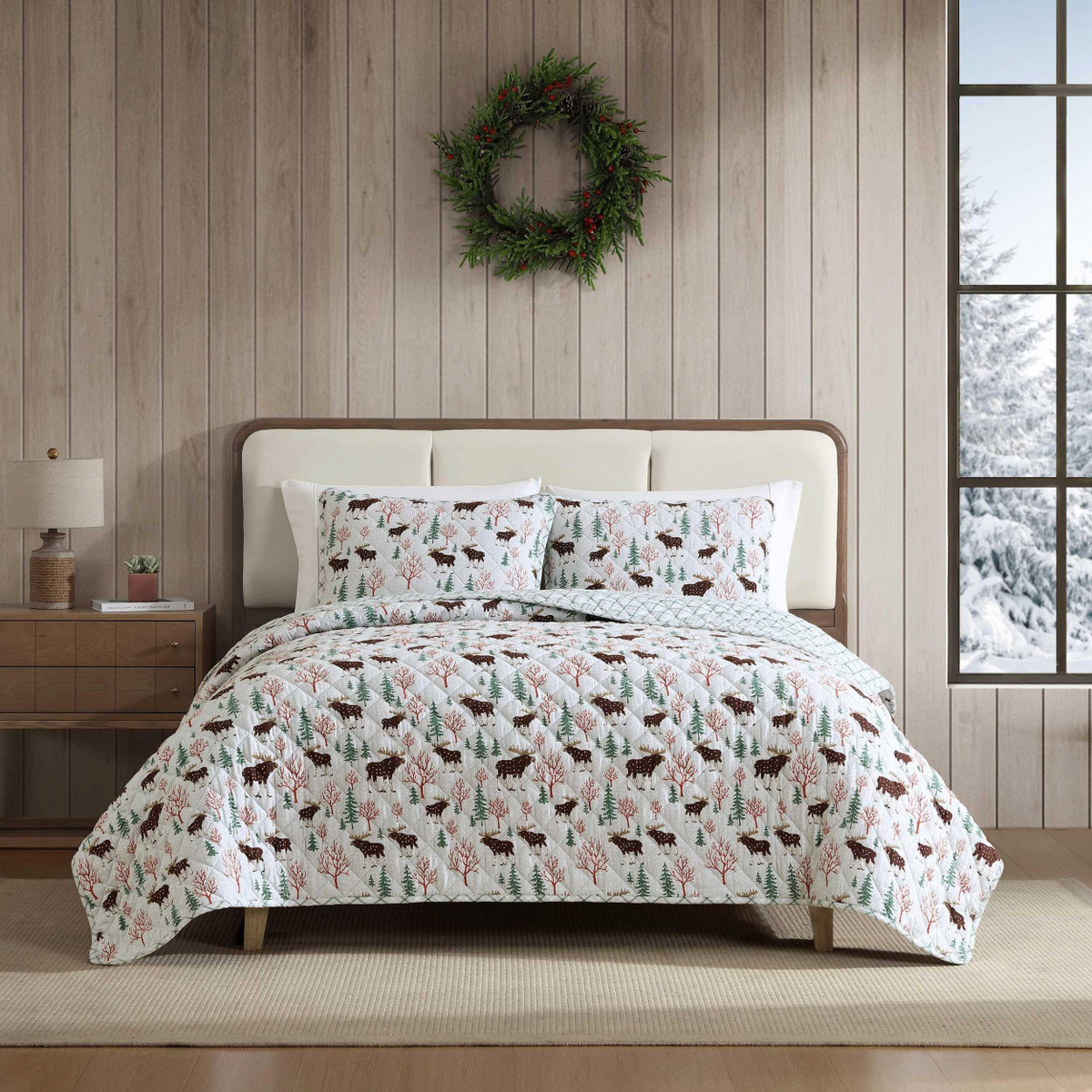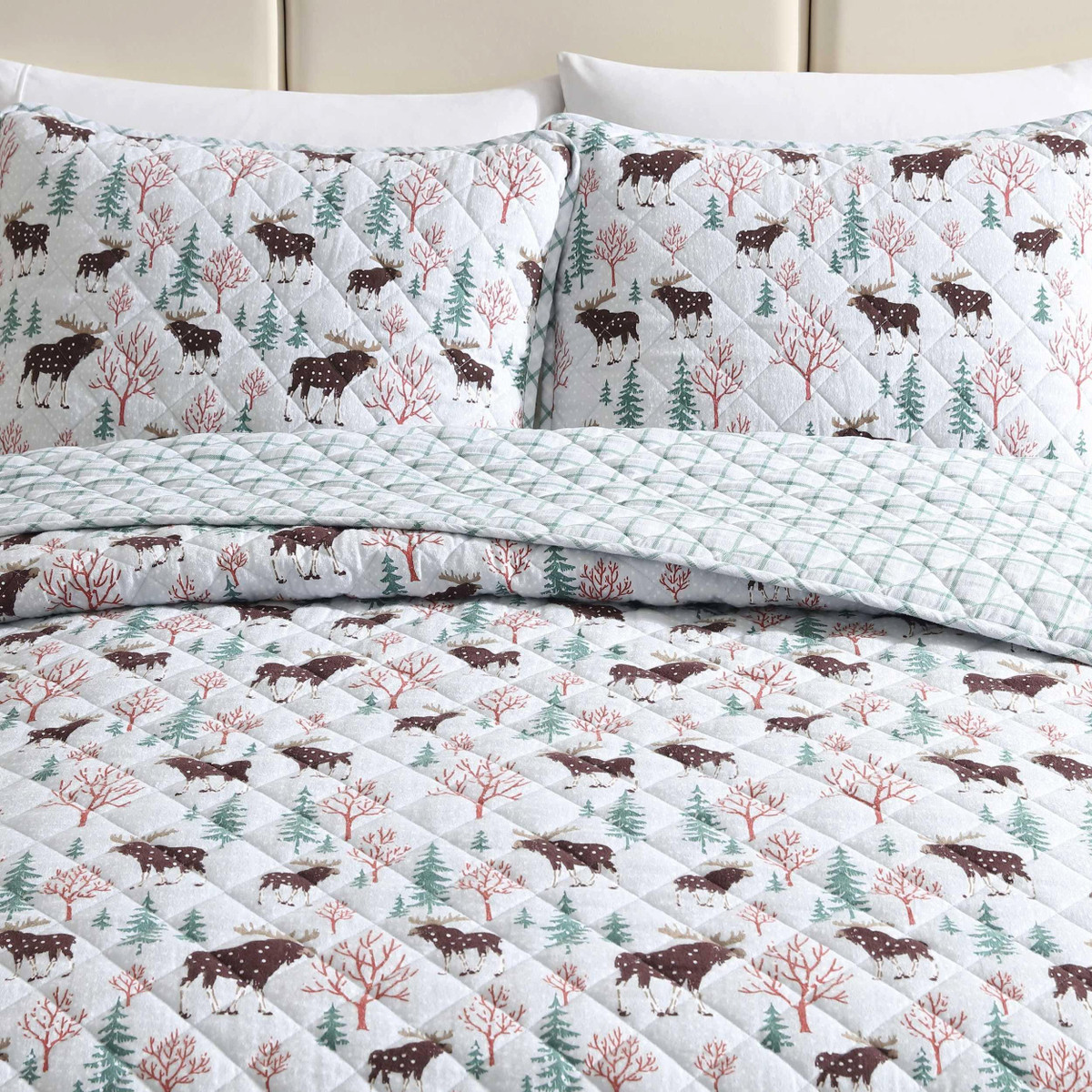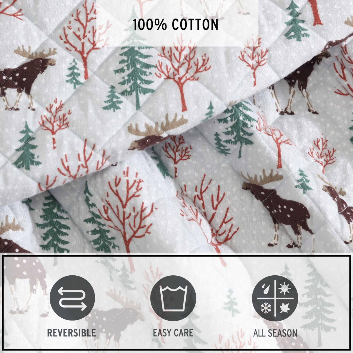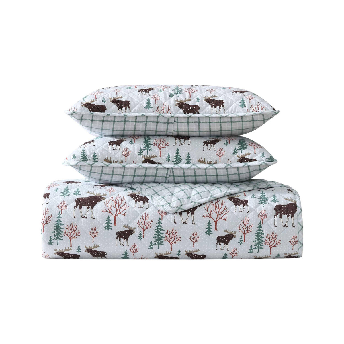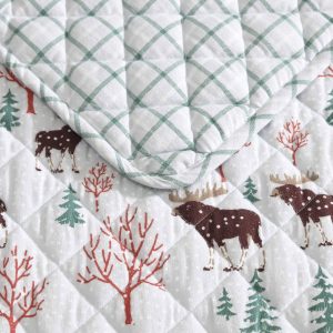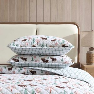 Transform your bedroom into a cozy haven for the cooler nights with the Eddie Bauer Mountain Moose Quilt Set. Crafted from 100% cotton flannel, the quilt is brushed, with subtle dimensions that enhance comfort. Filled with 100% polyester, it offers a medium weight for a warm feeling, making it ideal for cooler months. The quilt features rounded corners and a unique diamond quilt stitch, details that reflect the Eddie Bauer commitment to quality and craftsmanship. Machine washable for easy care.