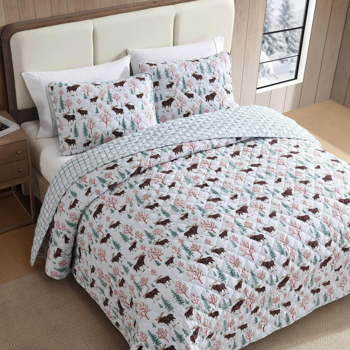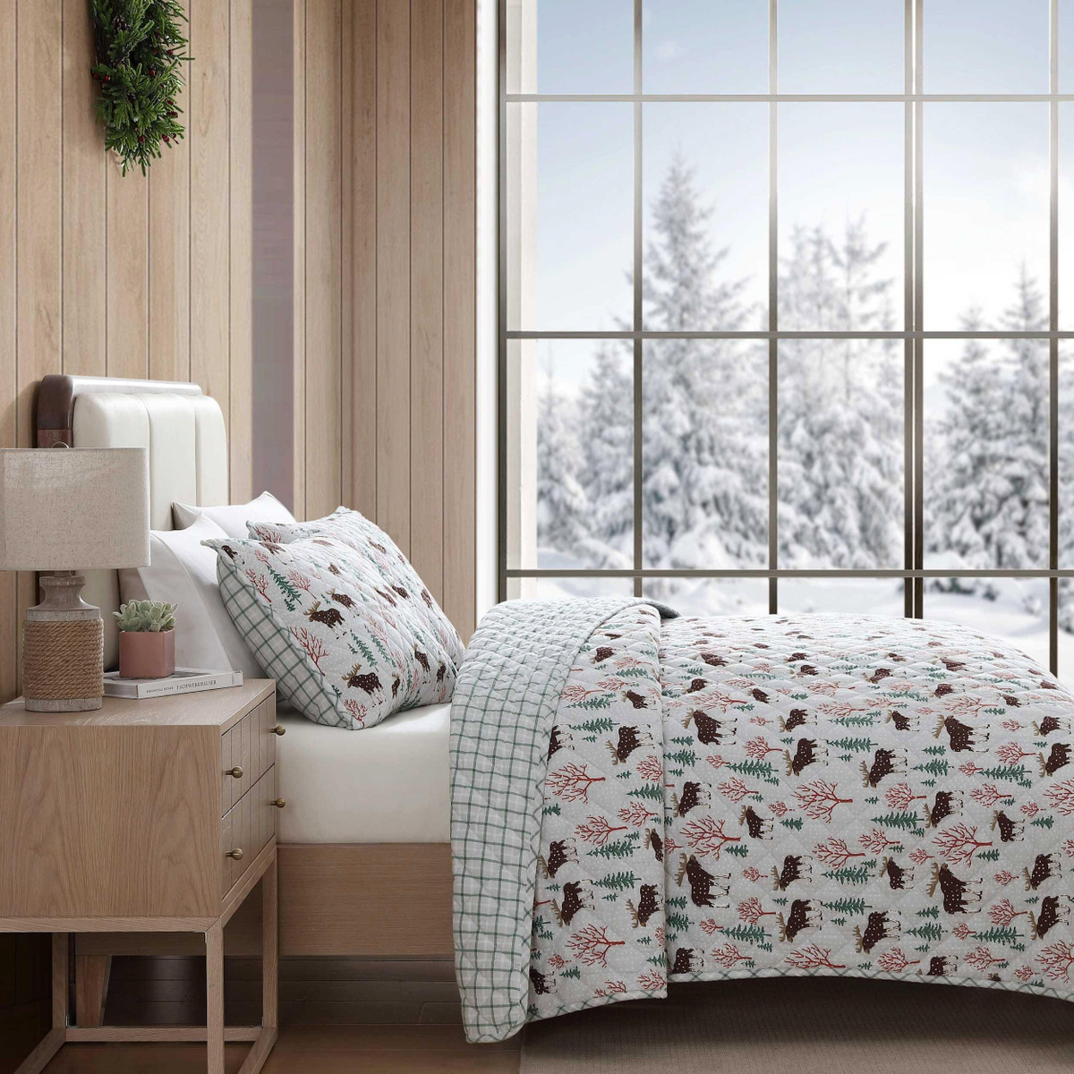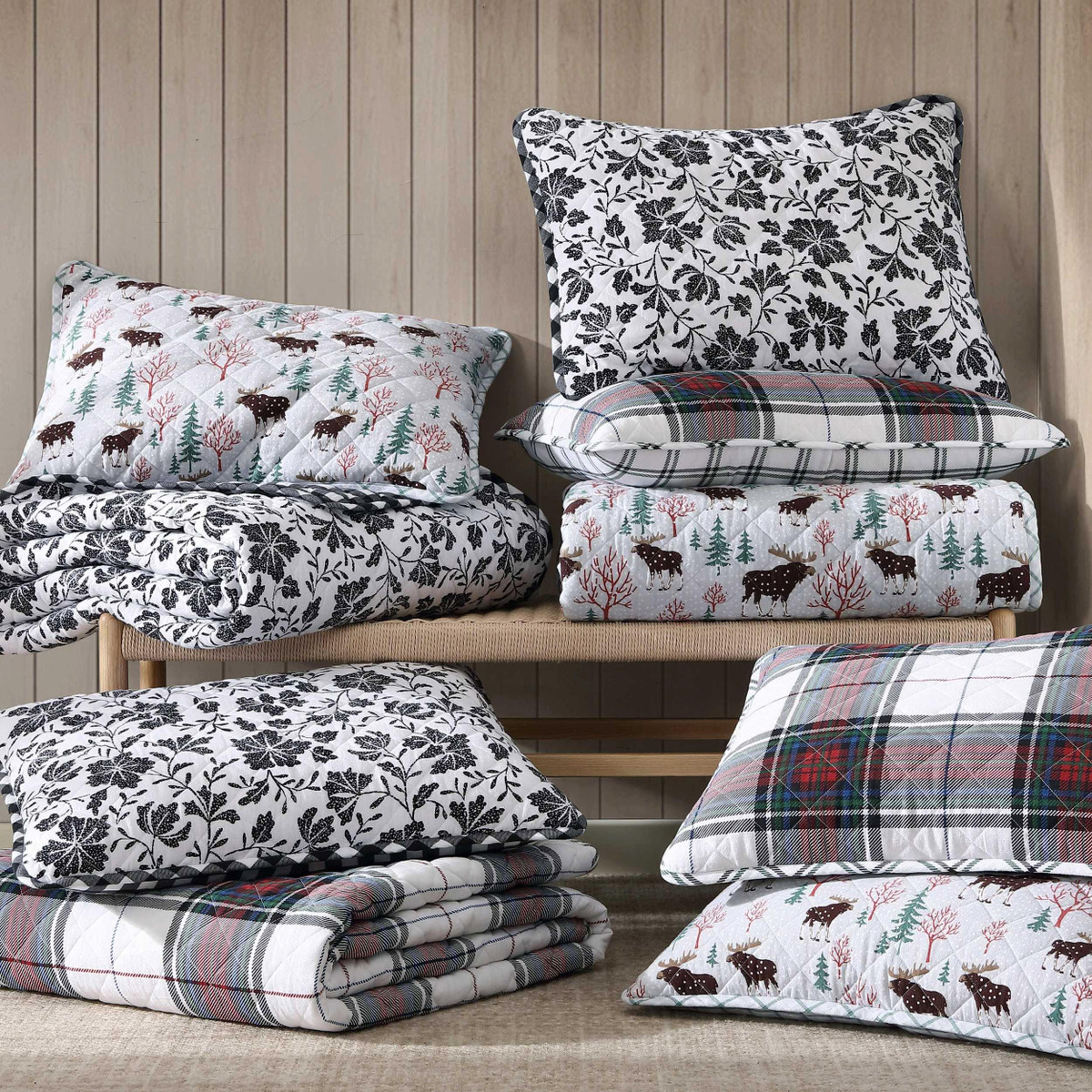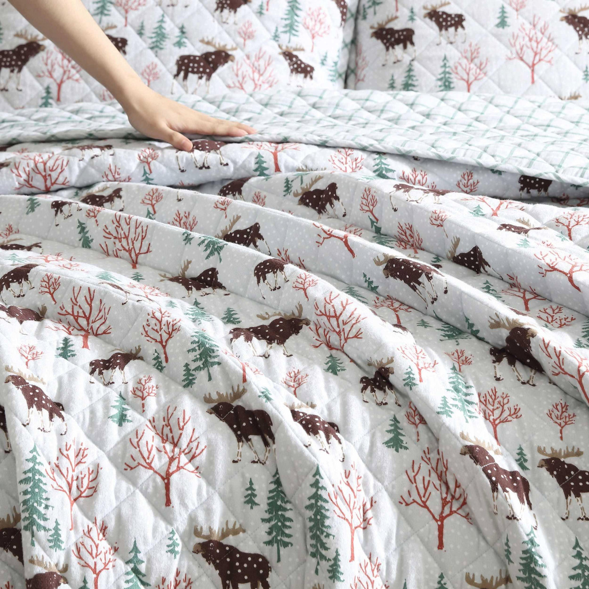 Transform your bedroom into a cozy haven for the cooler nights with the Eddie Bauer Mountain Moose Quilt Set. Crafted from 100% cotton flannel, the quilt is brushed, with subtle dimensions that enhance comfort. Filled with 100% polyester, it offers a medium weight for a warm feeling, making it ideal for cooler months. The quilt features rounded corners and a unique diamond quilt stitch, details that reflect the Eddie Bauer commitment to quality and craftsmanship. Machine washable for easy care.