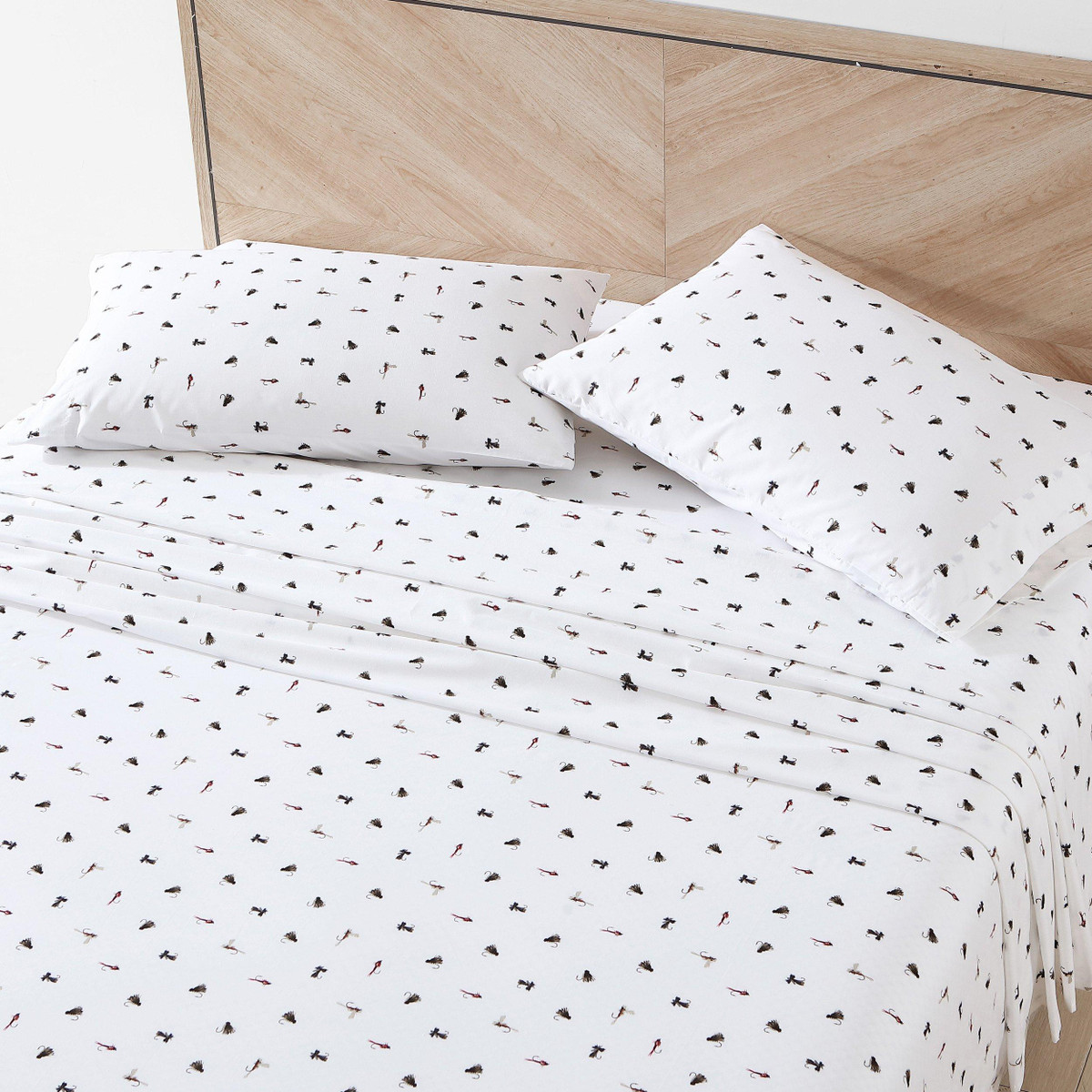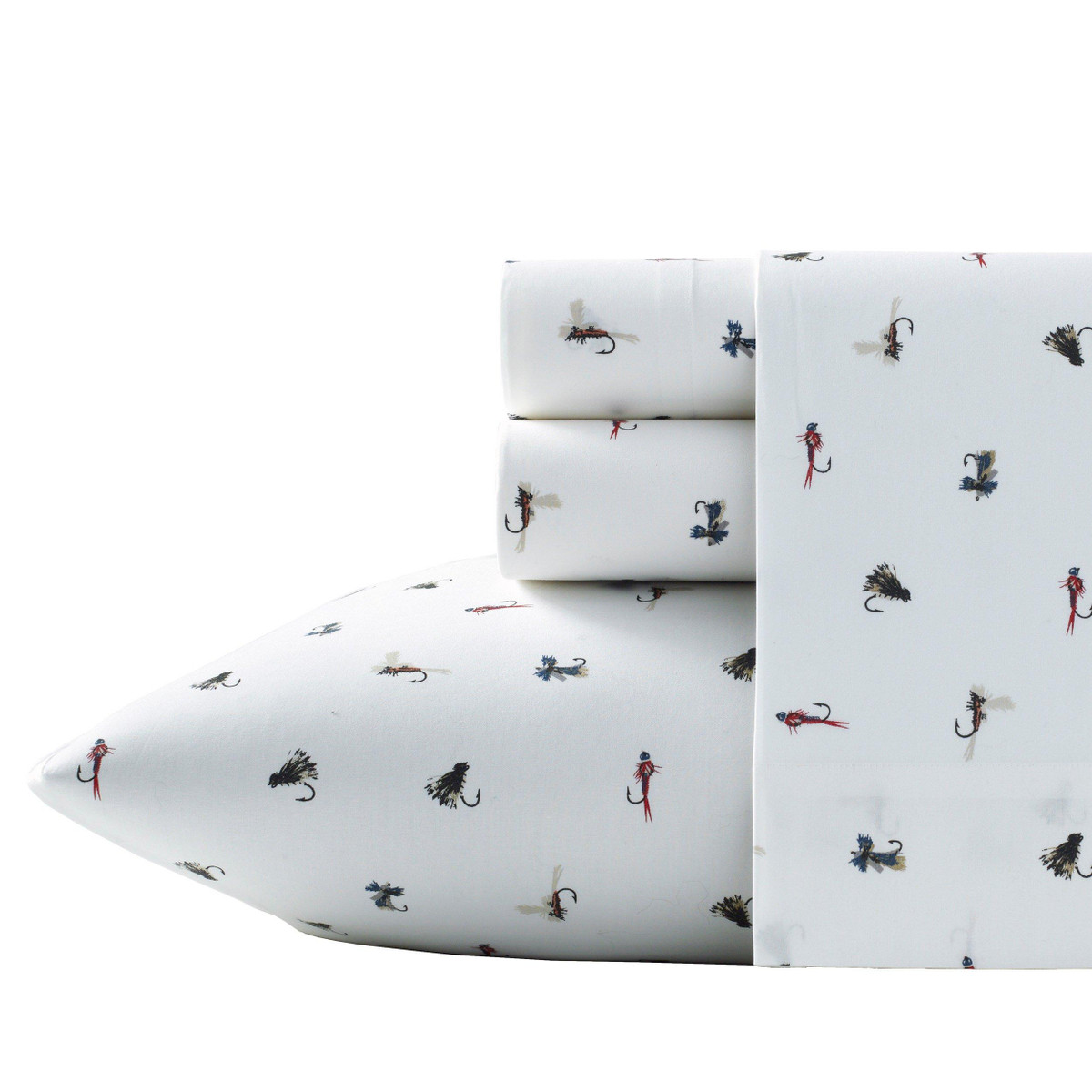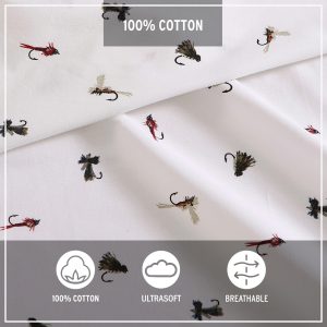 Celebrate your love for the outdoors with the Eddie Bauer Novelty Fishing Flies Sheet Set. Made from crisp, breathable 100% cotton percale, this set features playful fly-fishing prints that soften with every wash. The fully elasticized fitted sheet ensures a secure fit, and OEKO-TEX certified dyes offer eco-friendly comfort. Machine washable for easy care.