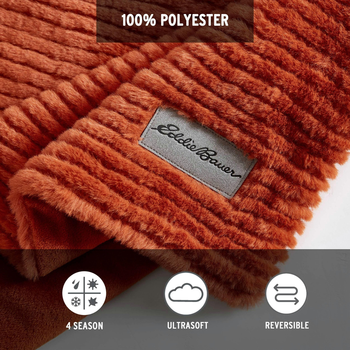 Introducing the corduroy stripe throw collection from Eddie Bauer, a textured plush design reversing to a luxurious micromink. Made from 100% polyester, these throws are cozy and warm. Features iconic Eddie Bauer logo patch. Perfect for gifting or cuddling up for movie night and ideal for travel. Mesurments 50” x 60”