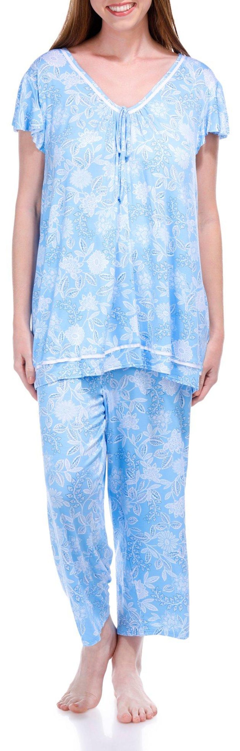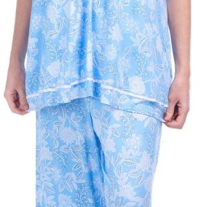 Introducing a comfortable 2-piece sleepwear set, perfect for a restful night’s sleep. This set includes a sleeveless tee with a charming tied neck detail, adding a touch of elegance to your nighttime attire. The matching pants ensure a cozy fit, making this set ideal for lounging and bedtime. Crafted from soft, breathable fabric, this sleepwear set combines style and comfort effortlessly. Fabrication is 95% rayon, 5% spandex.