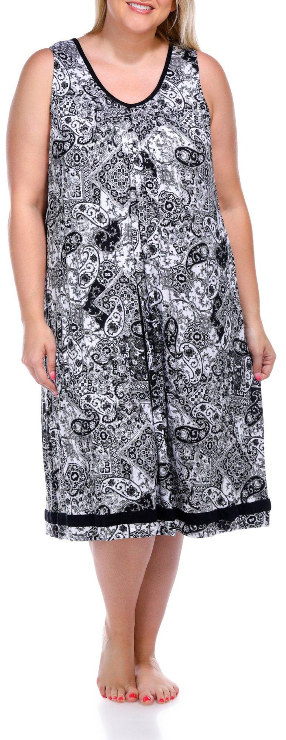 Ellen Tracy Womens Sleeveless Paisley Night Gown