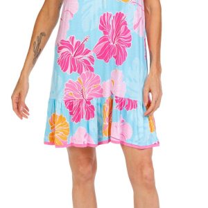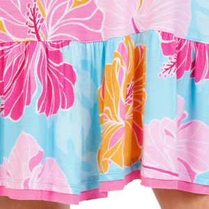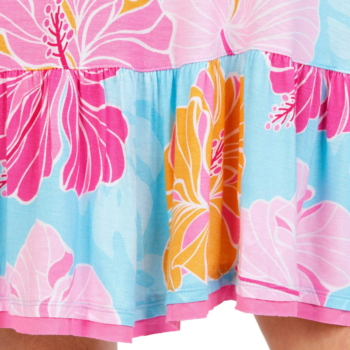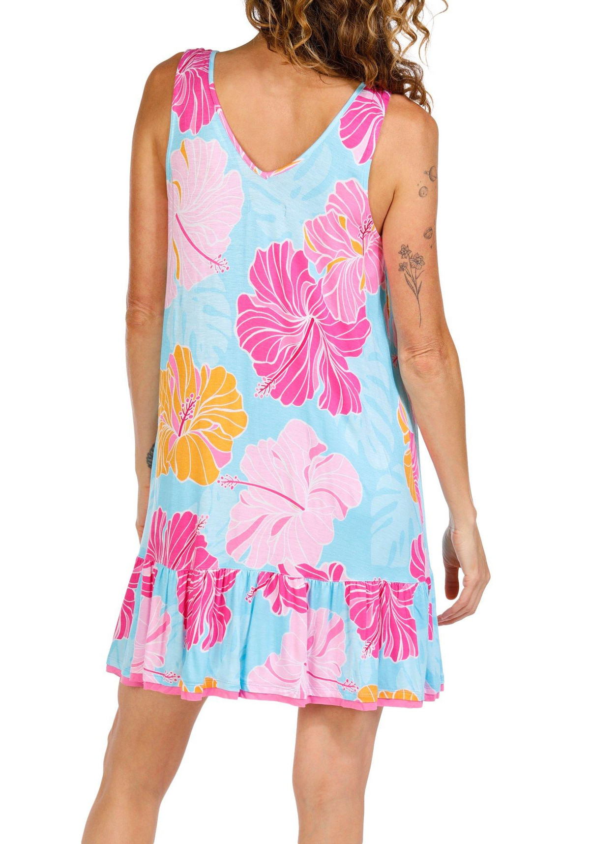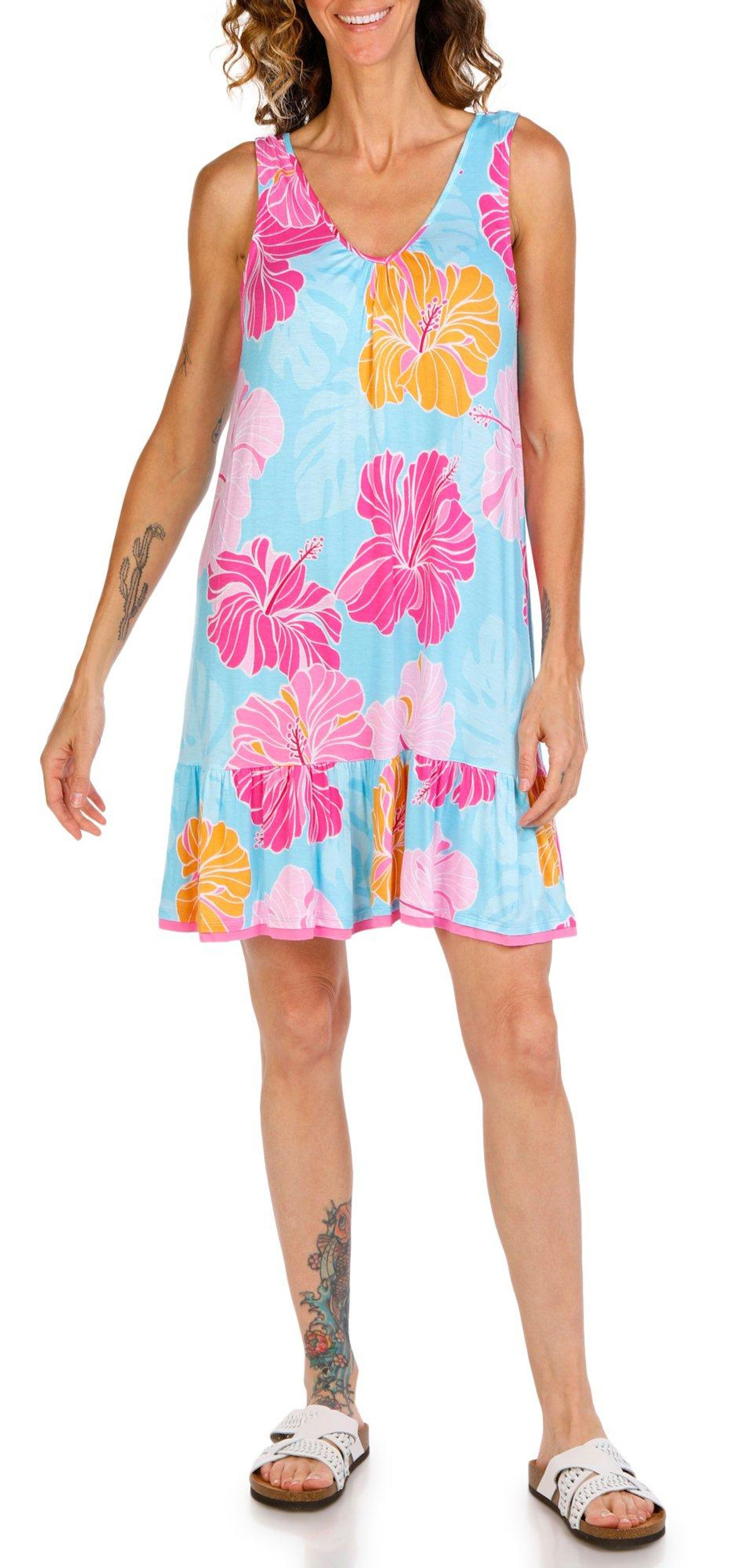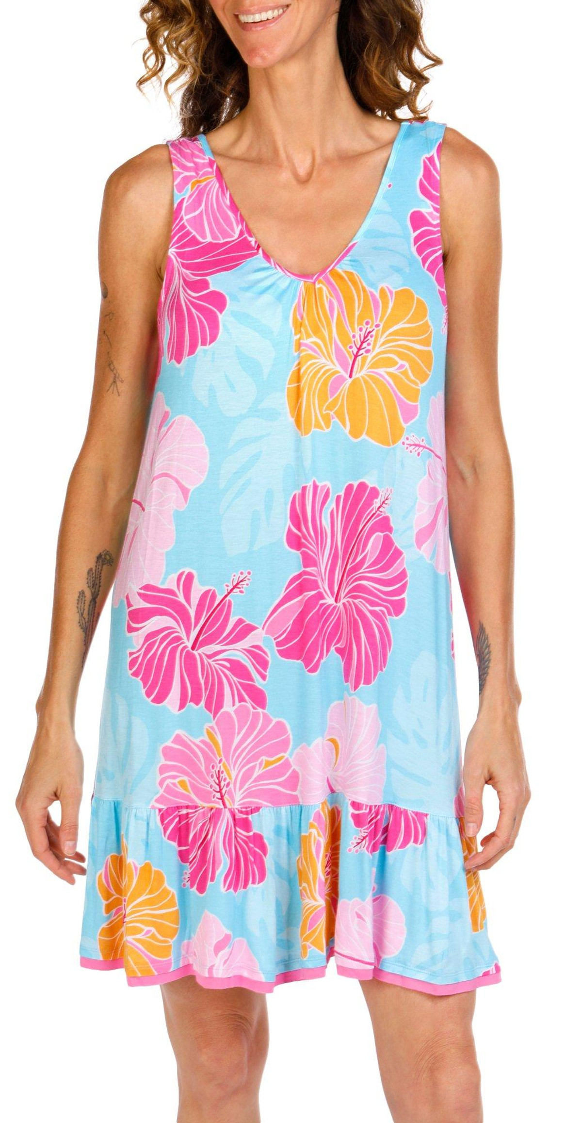 This sleeveless nightgown is made from soft fabric and features a vibrant print for a bright and comfy bedtime look. Light and breezy its perfect for warm nights and easy relaxation. Fabrication is 95% rayon, 5% spandex.