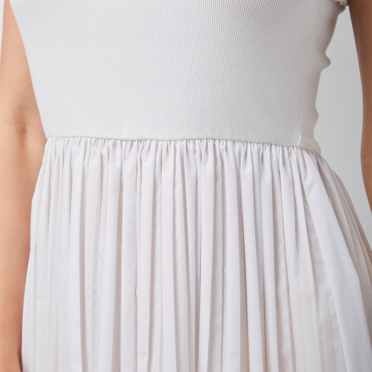 Introducing our Women’s Sleeveless Ruffle Midi Dress, crafted from a blend of cotton, polyester, and spandex. This stylish dress features a solid color, a pleated skirt, and elegant ruffle detail on the upper. The midi length adds a touch of sophistication, making it perfect for both casual and formal occasions. Embrace effortless style and comfort with this versatile and chic dress.