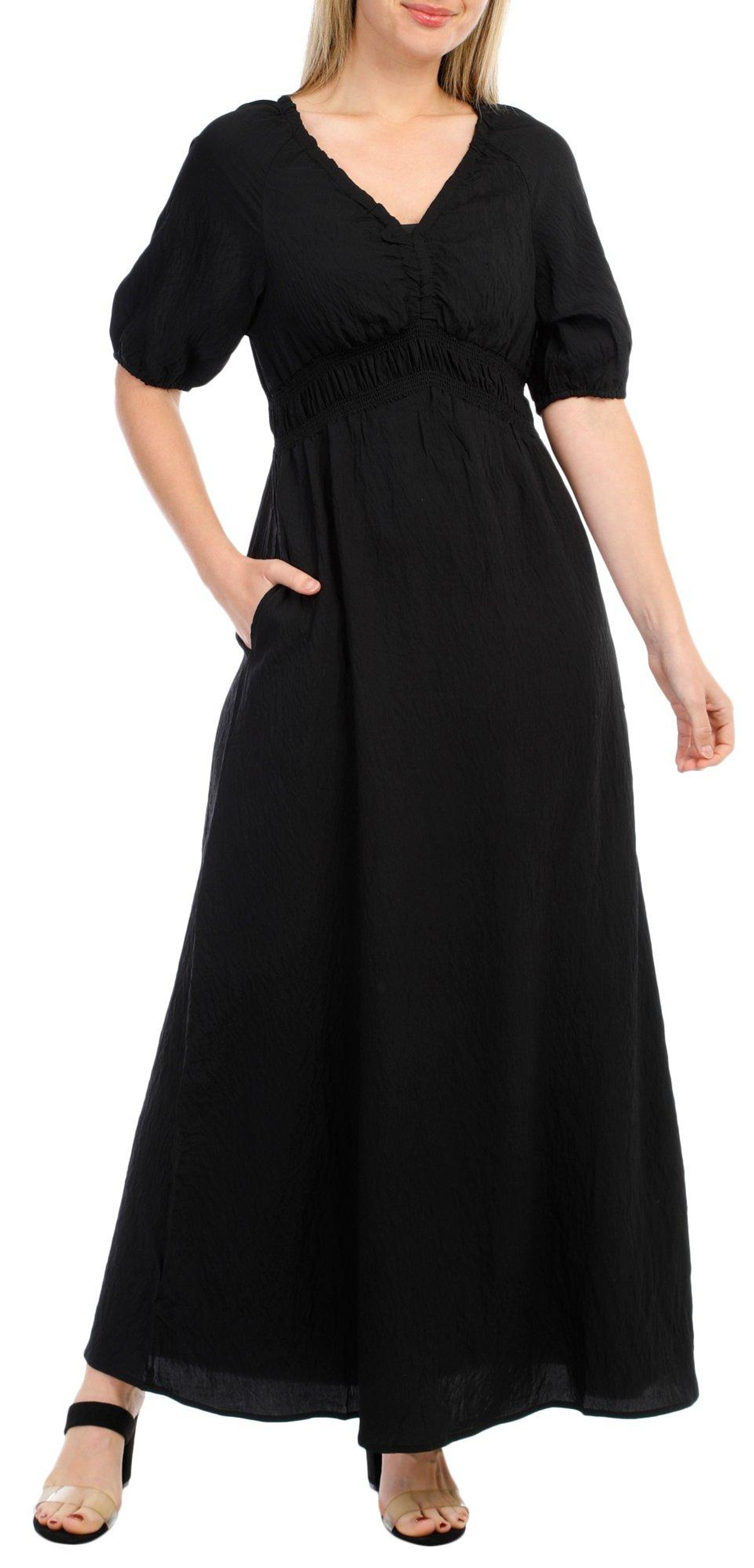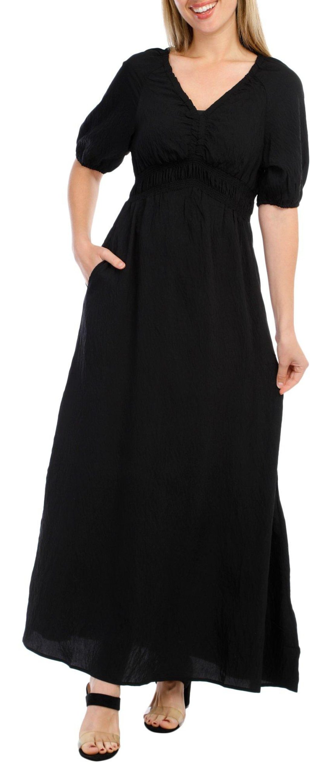 Ellen Tracy Womens Solid V-Neckline Maxi Dress
