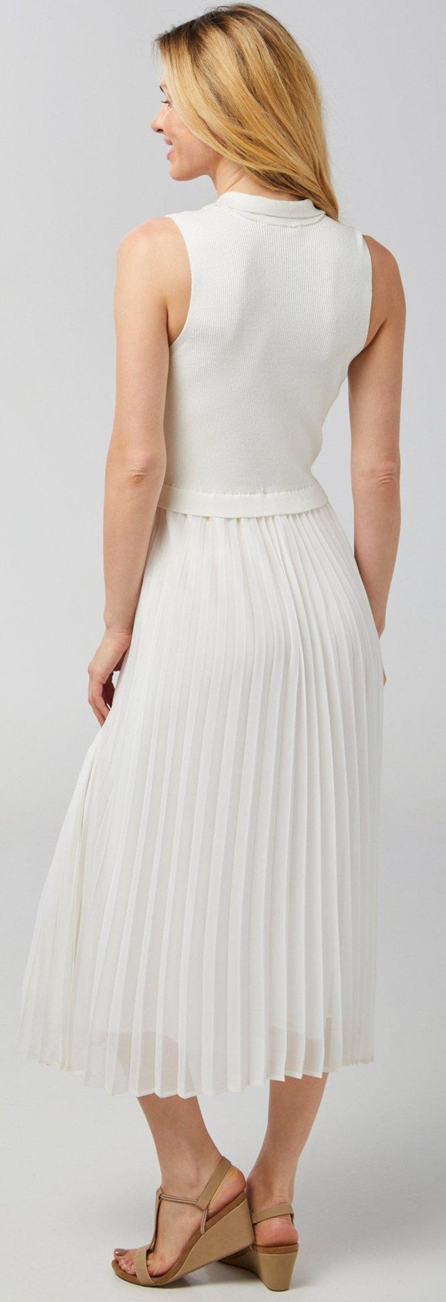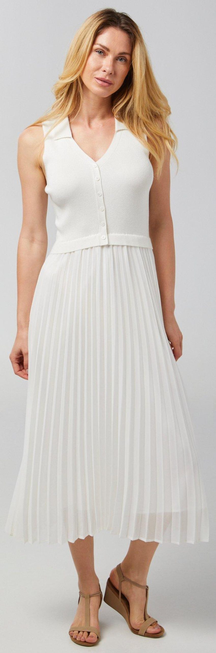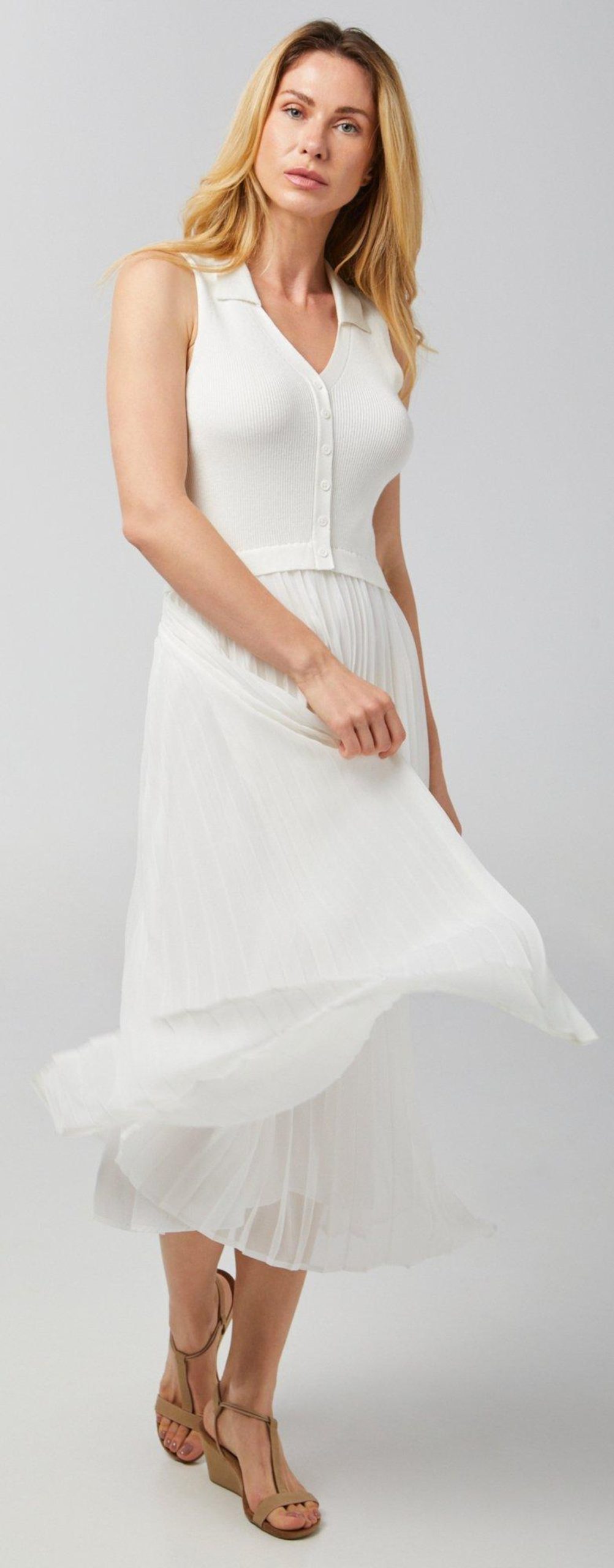 Introducing our Women’s Sleeveless Pleated Midi Dress, a perfect blend of elegance and sophistication. This dress features a collared button-down sleeveless upper, adding a touch of classic charm. The pleated midi-length skirt flows gracefully, making it ideal for both casual and formal occasions. Embrace effortless style and comfort with this versatile and chic dress.