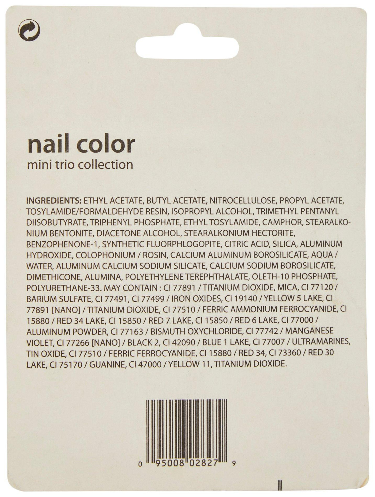 Elevate your manicure with the 3 Pc Mini Trio Nail Polish Set, featuring the shades Bon Boyage, Highest Bidder, and Rock at the Top. This curated collection offers a mix of soft, bold, and shimmering finishes for versatile styling. The high quality formula delivers smooth application and long lasting color. Perfect for travel, gifting, or seasonal nail updates.