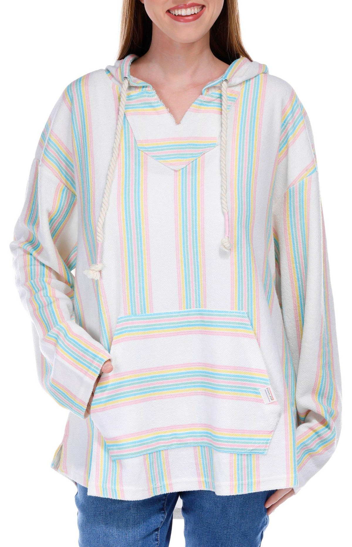 The Striped Baja Seafoam Hoodie combines comfort and style effortlessly. Made with a cozy fabric, this hoodie features a drawstring hood and a convenient kangaroo pocket, perfect for keeping your hands warm or storing small essentials. The seafoam stripes add a touch of coastal charm, making it an ideal choice for casual outings or relaxed days at home.