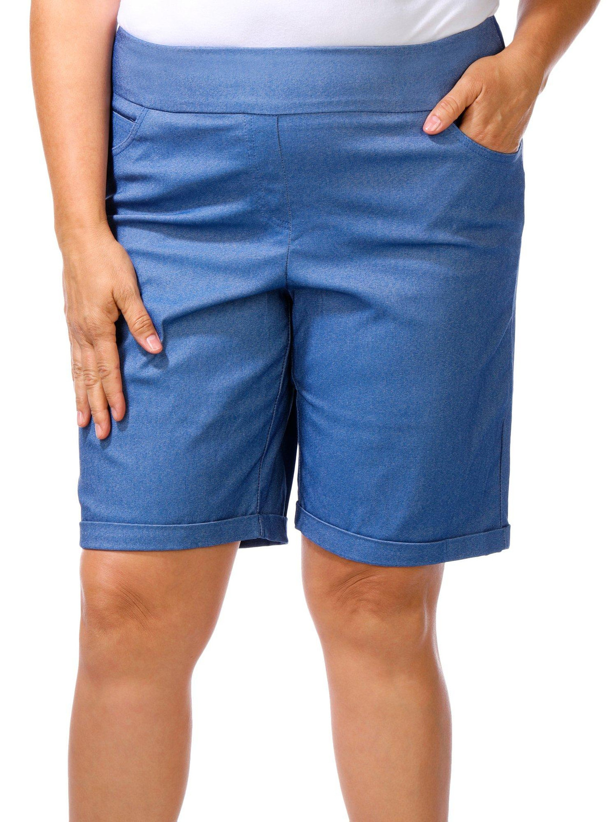 Brighten your wardrobe with these Plus Solid Roll Cuff Bermuda Shorts. Made from a soft, stretchy blend of rayon, nylon, and spandex, they feature a solid color, pull-on waistband, classic 5-pocket cut, and a roll cuff hem for a relaxed yet stylish finish.